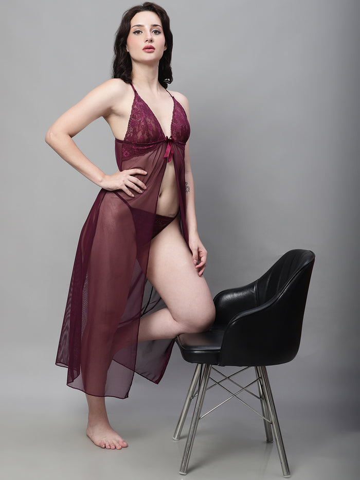 When you want to bring some spice back into your life, there is nothing that can do more than a babydoll. Babydoll set makes you feel like a diva from the very second you put it on. The cups and back are styled with intricate lace. The bustline is elasticated for a snug fit. This baby doll is crafted with intricate lace fabric......