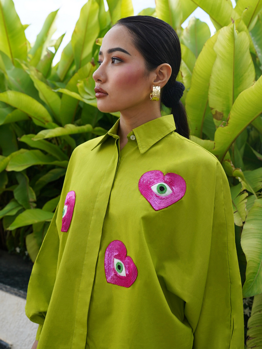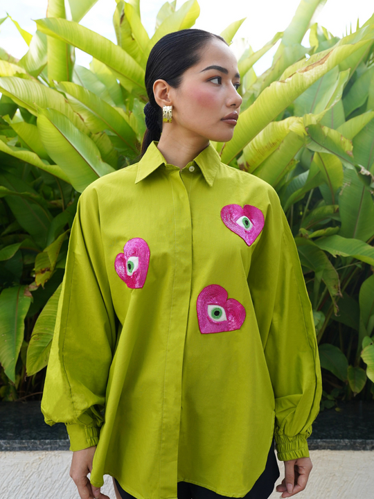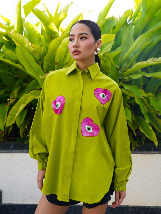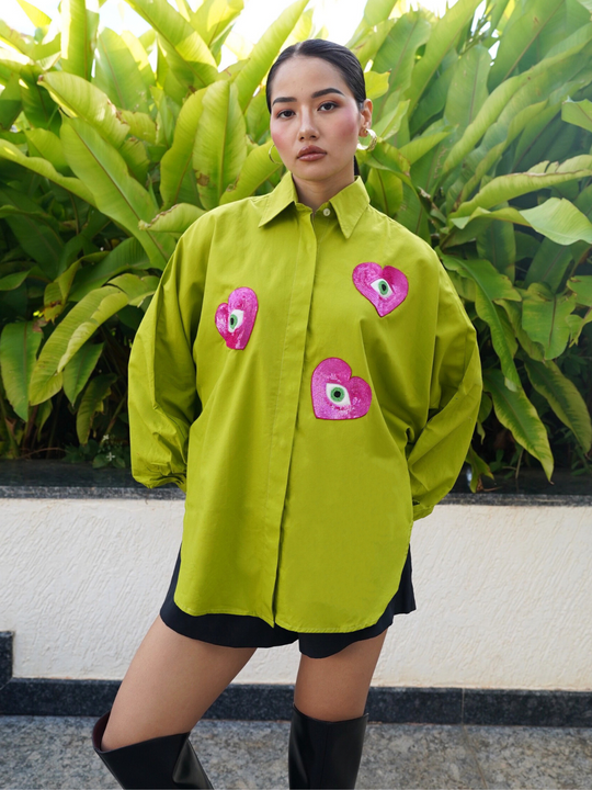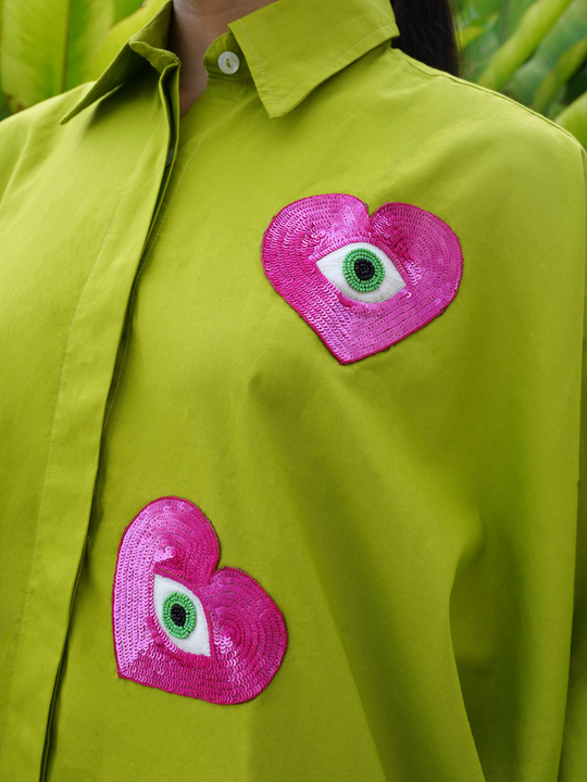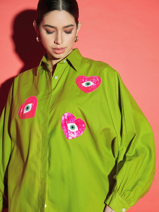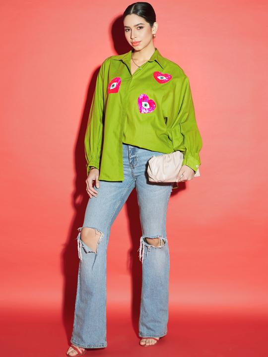 350-1231 [Color = Neon Green- Heart ] [Size = XS, S, M, L, XL, 2XL] This Cotton Sequinned Shirt is perf...