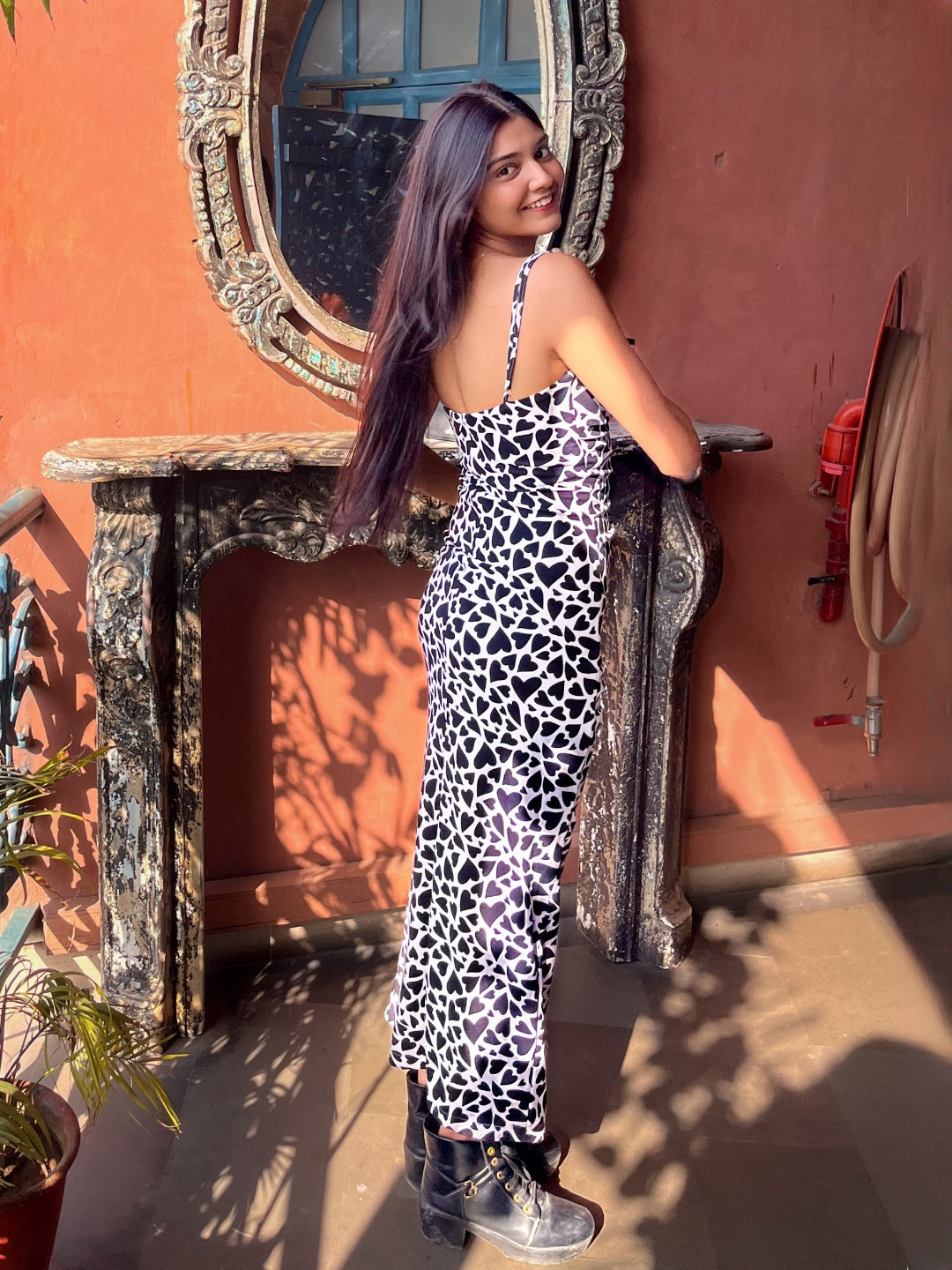 This bodycon dress is sure to make heads turn! With a cowl neck detailing, thin straps and the perfect midi length, it is oh so trendy. The high slit is adjustable so go as high or low as you want! The drawstring allows you to adjust the fit, The silhouette of the dress is very flattering....