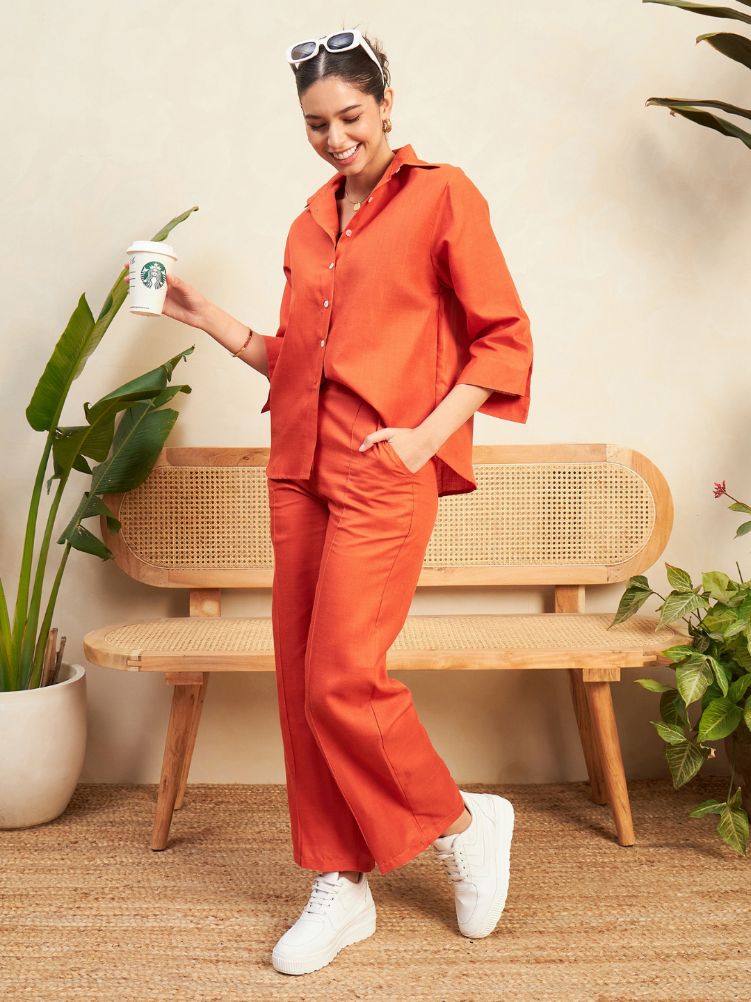 899-2180 [Color = Orange ] [Size = XS, S, M, L, XL, 2XL] Ace your everyday looks with the Linen Co-ord...