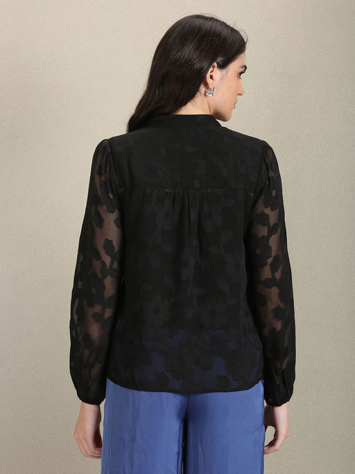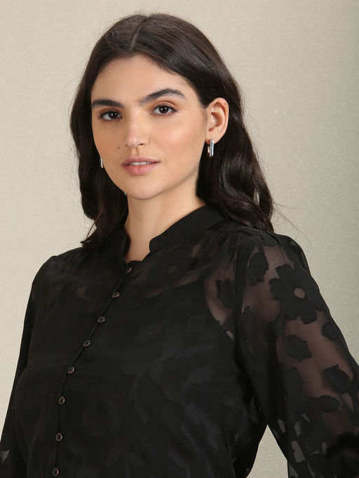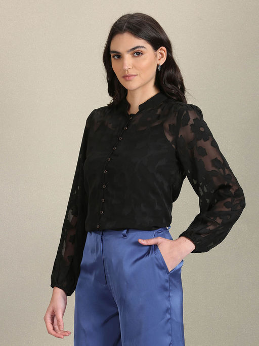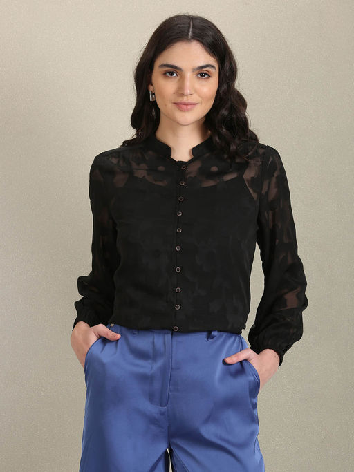 This long-sleeve shirt is accented with a mandarin collar, straight hemline and all-over lace detail. Tailored to sartorial perfection from premium quality fabric, it assures a soft and soothing touch against the skin. The exquisite silhouette adds to its appeal. ...