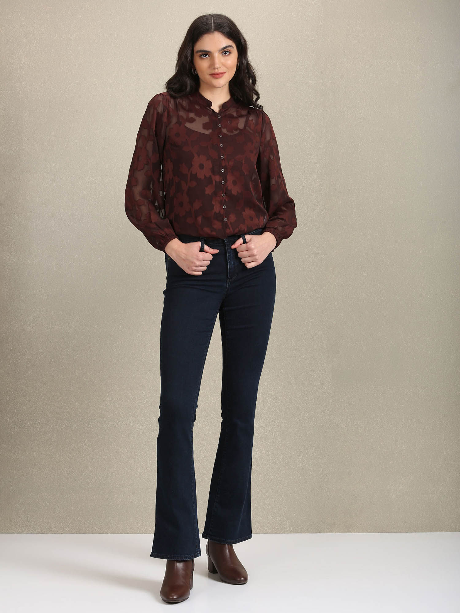 This long-sleeve shirt is accented with a mandarin collar, straight hemline and all-over lace detail. Tailored to sartorial perfection from premium quality fabric, it assures a soft and soothing touch against the skin. The exquisite silhouette adds to its appeal. ...