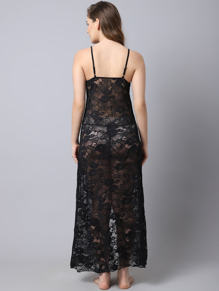OVERALL LACY WITH BOW FRONT OPEN LONG GOWN