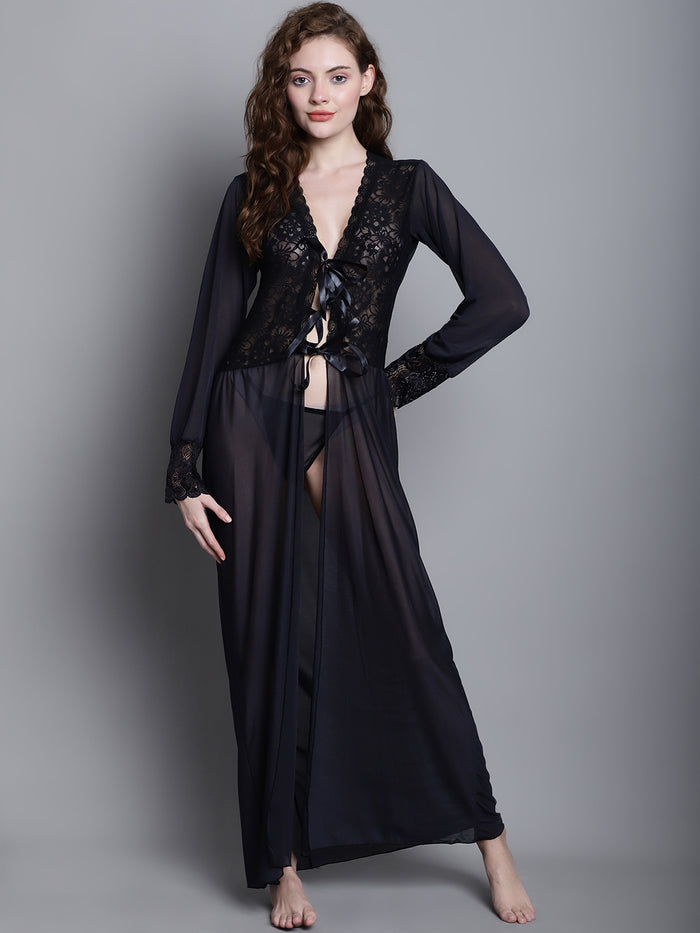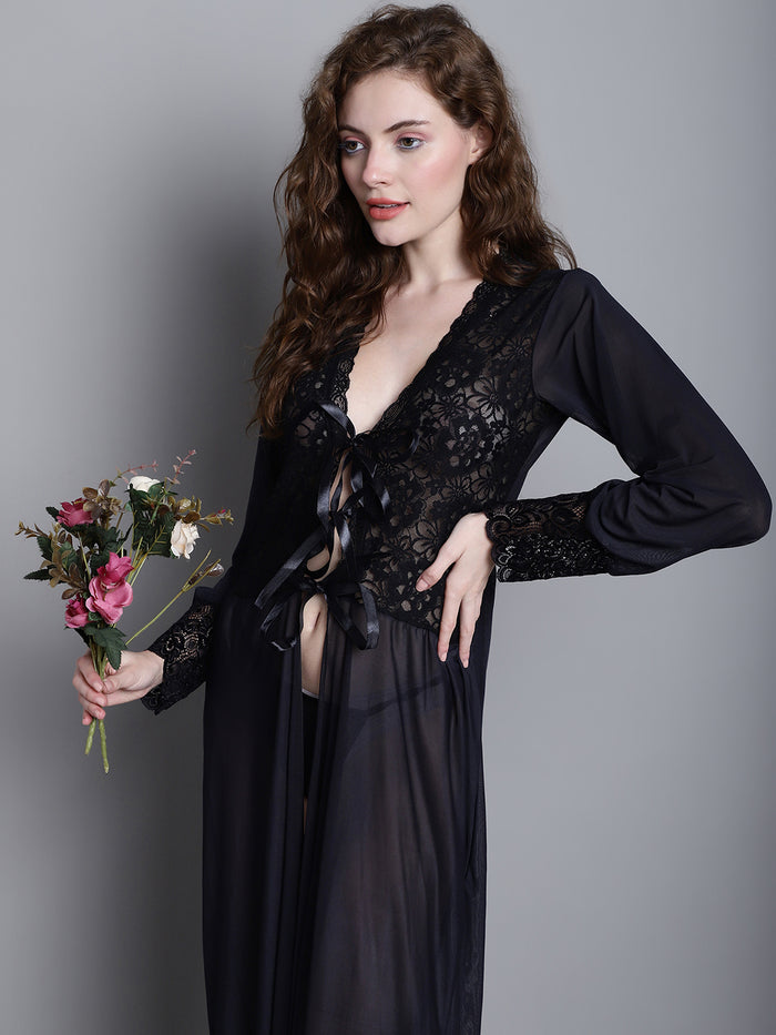 When you want to bring some spice back into your life, there is nothing that can do more than a babydoll. Babydoll set makes you feel like a diva from the very second you put it on. The cups and back are styled with intricate lace. The bustline is elasticated for a snug fit. This baby doll is crafted with intricate lace fabric......