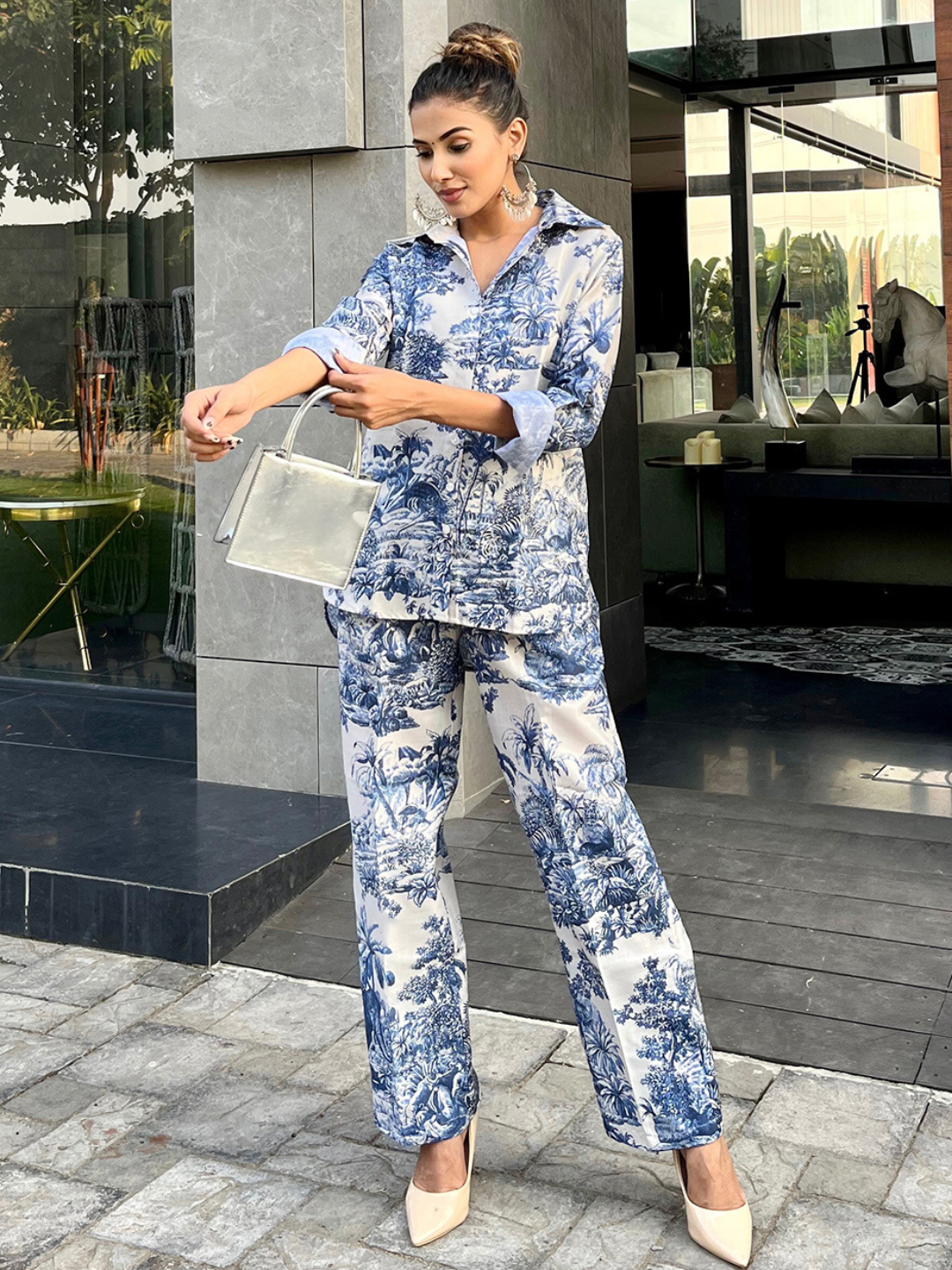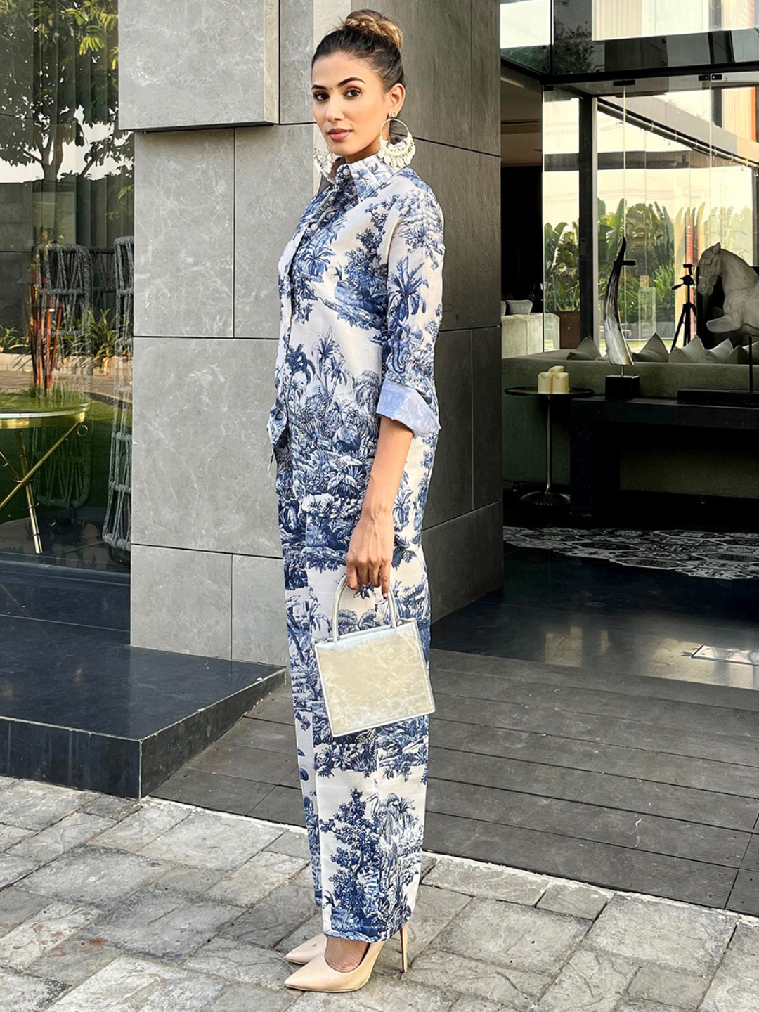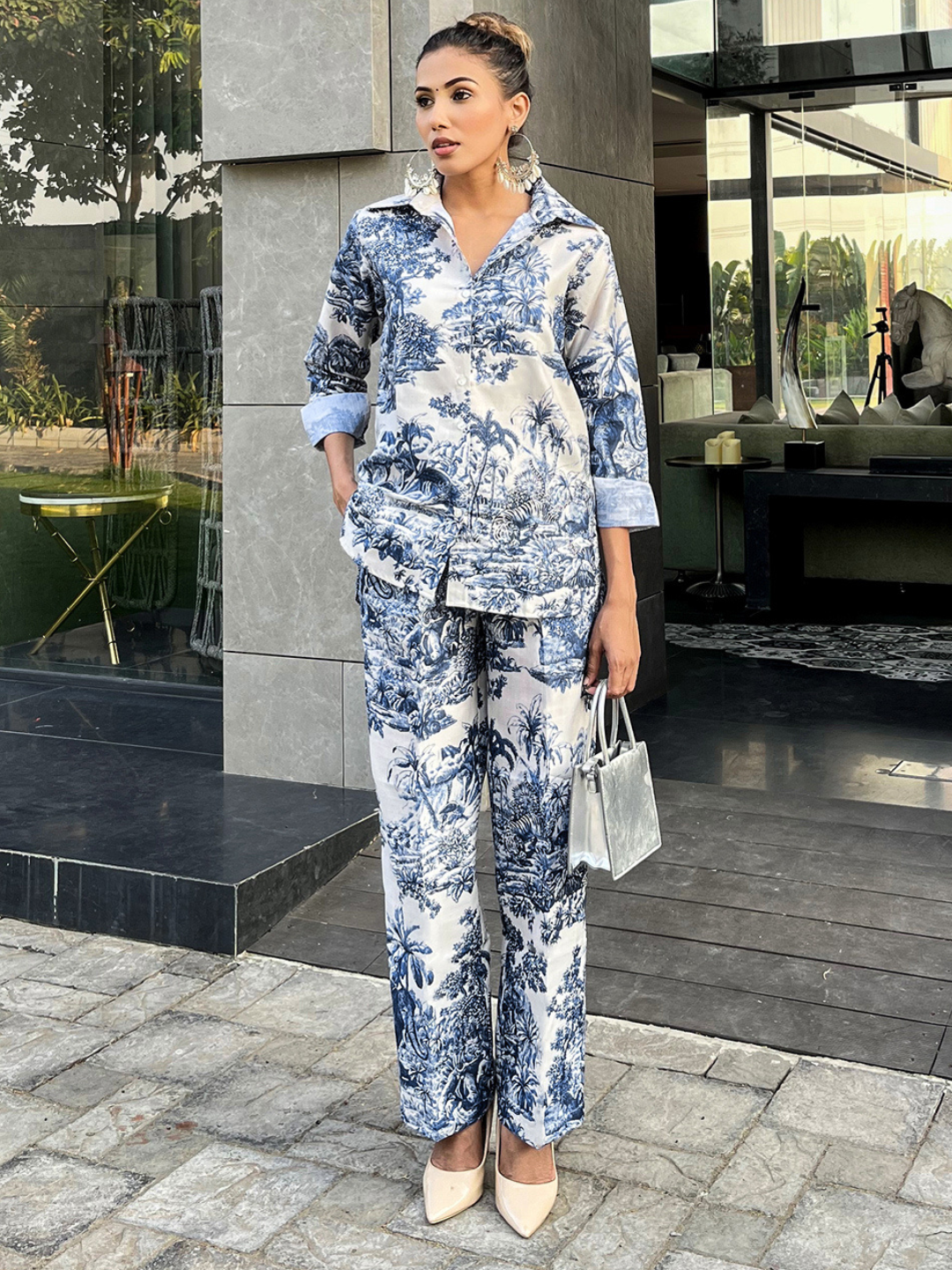 Ace your everyday looks with the Printed Linen Co-ord set! The set features linen pants and a linen shirt with buttons. The pants have a smooth waistband in the front, and a soft elasticated back for the perfect fit. We have used the best quality linen fabric for this set, and have developed special technology to make sure that the linen wrinkles less so you can easily go through the day looking as polished as you did in the morning!...