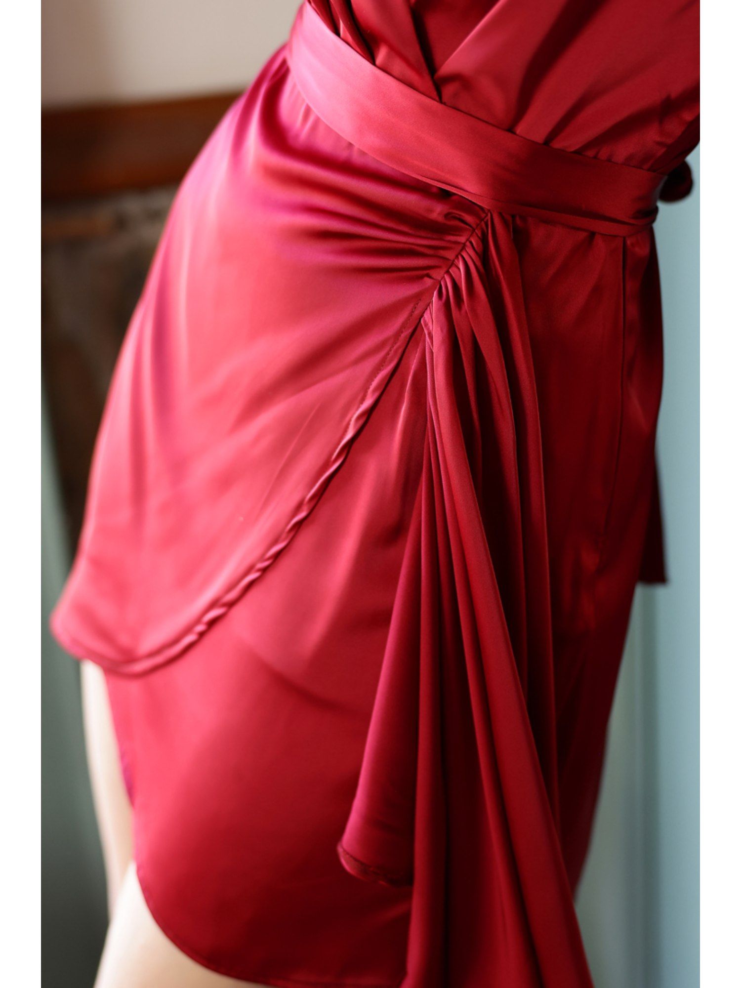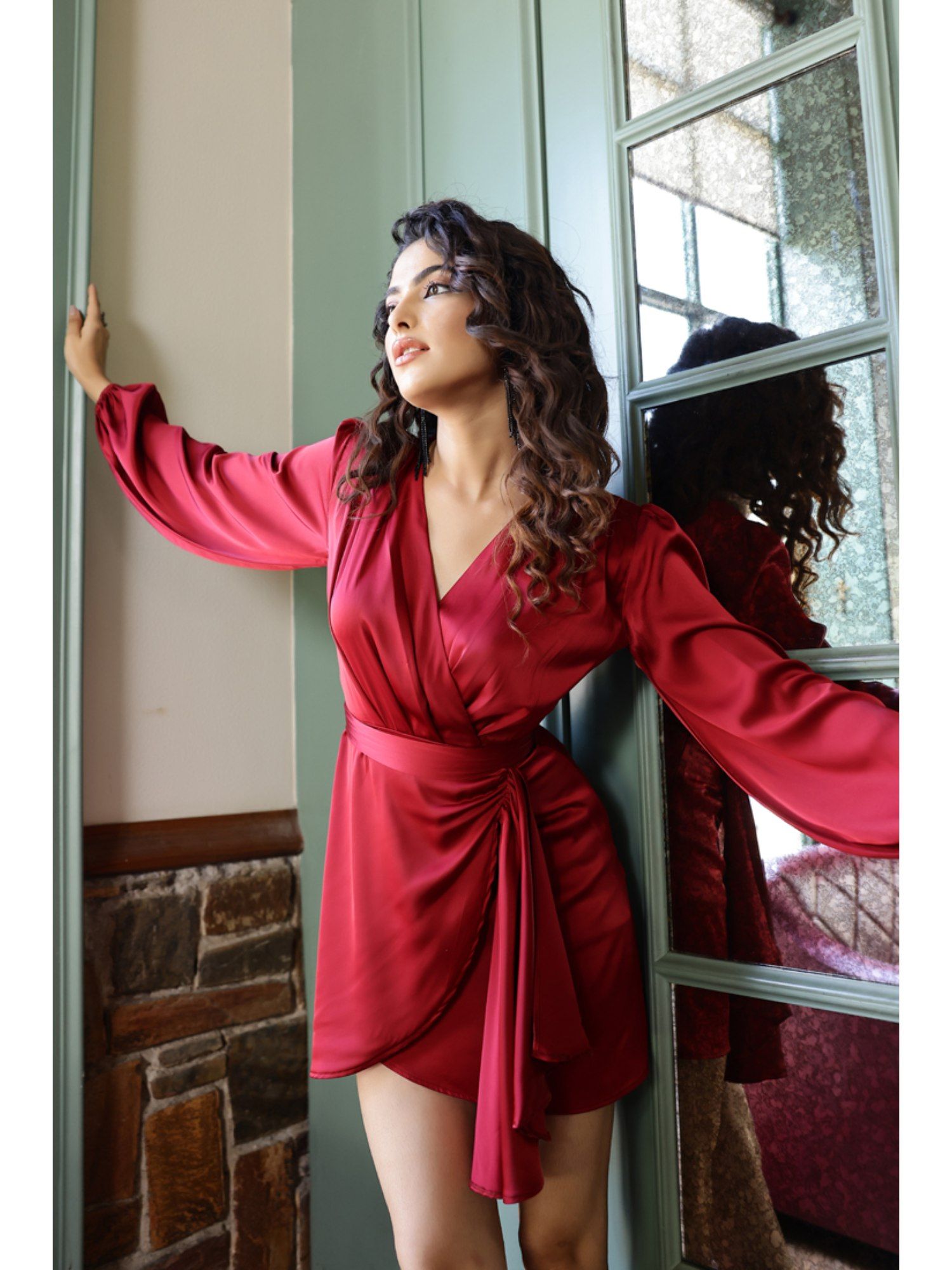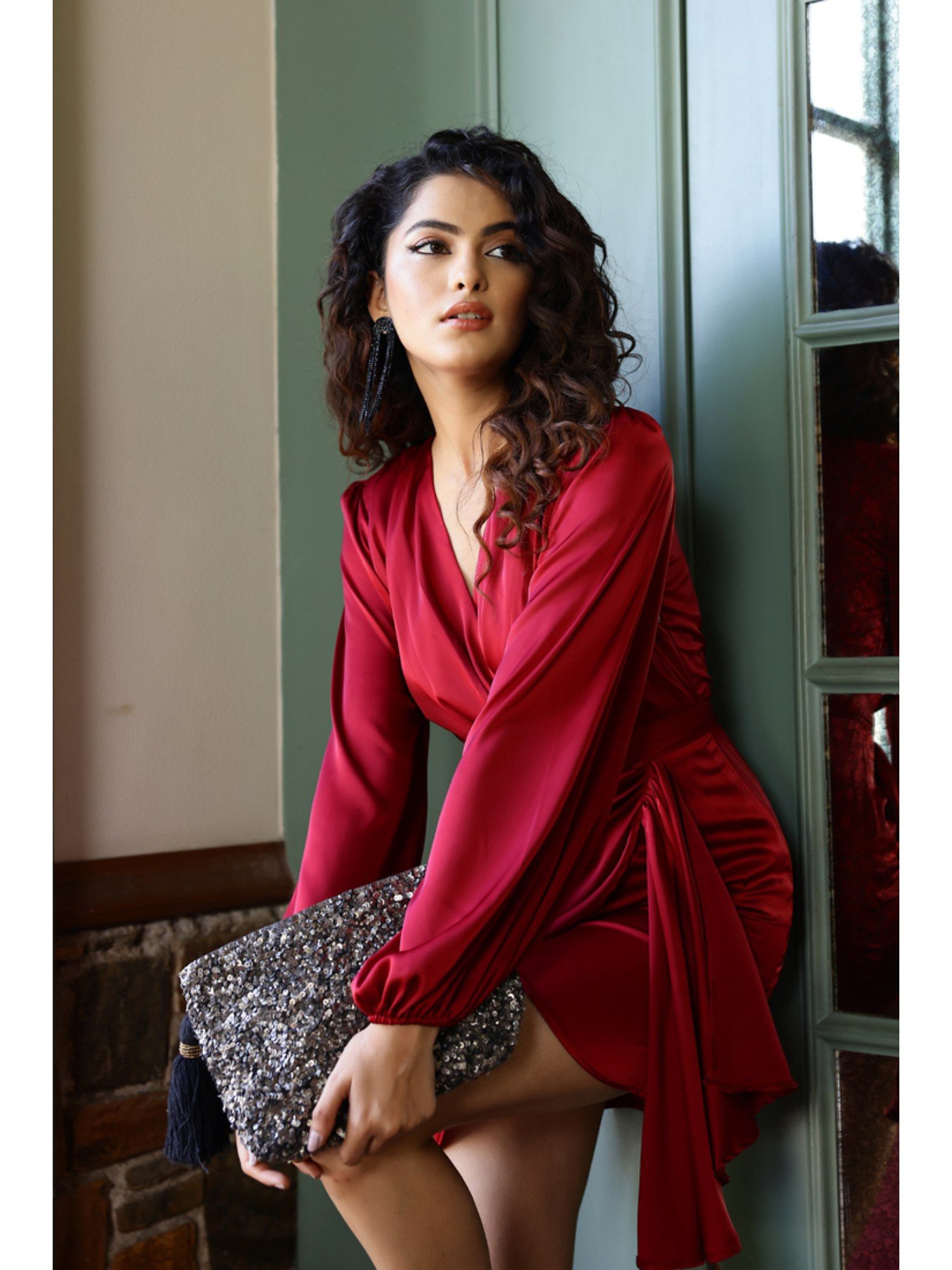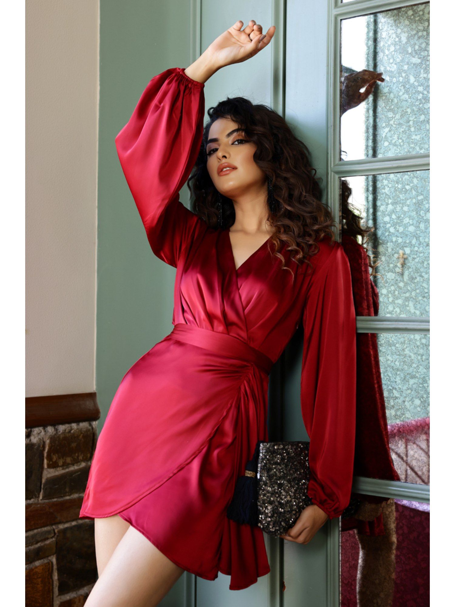 Made In Luxury Satin, This Is The Perfect Red Dress. The Fabric Carries Stretch That Accentuates The Body At The Right Places, Inaya Is The Perfect Dress For Any Evening. With Elasticied Sleeves With Slight Puff, And A Ruffled Front. Inaya Is Our Favorite From This Collection, She Is Truly The Star Of This Cosmic Circus....