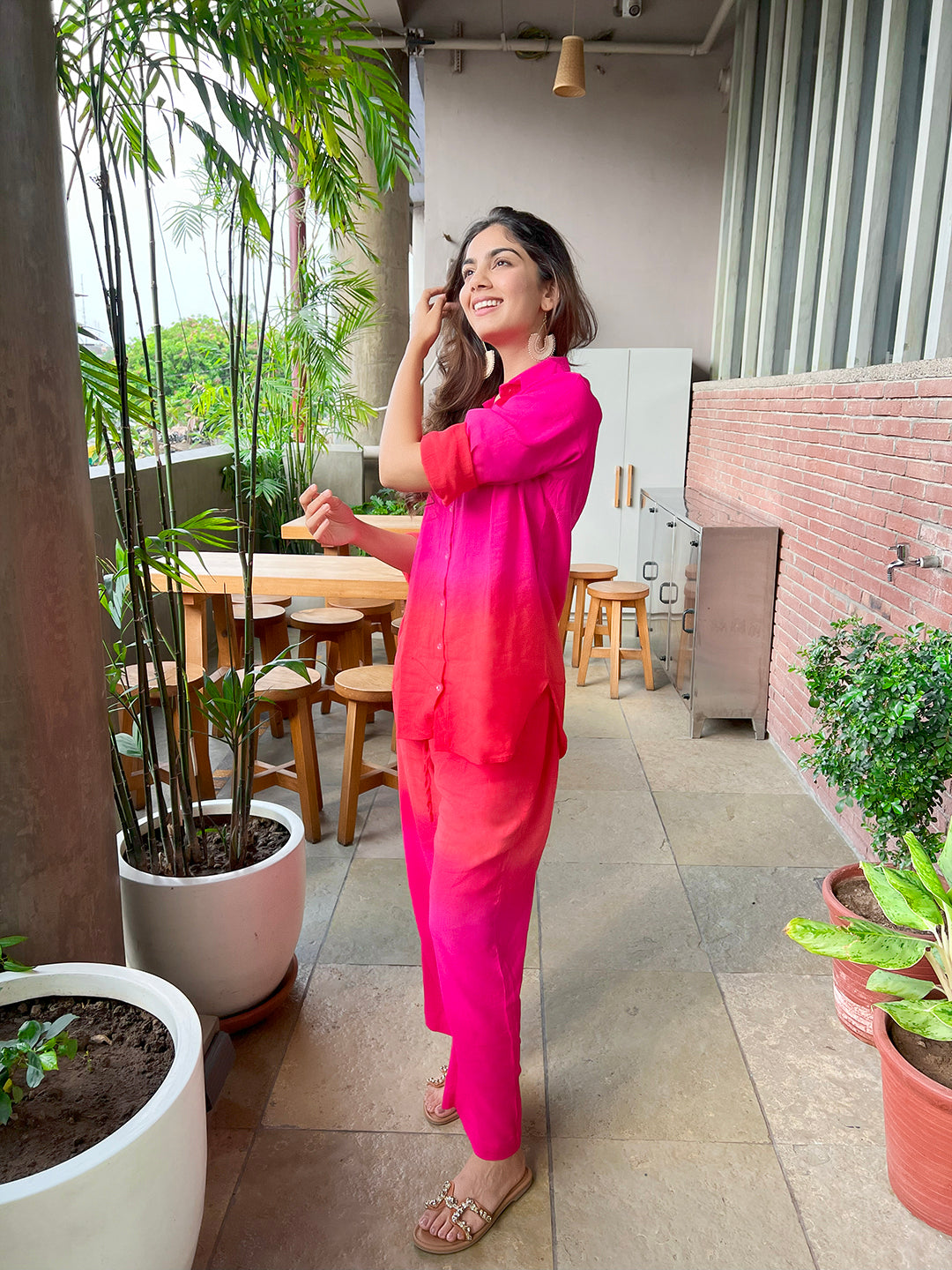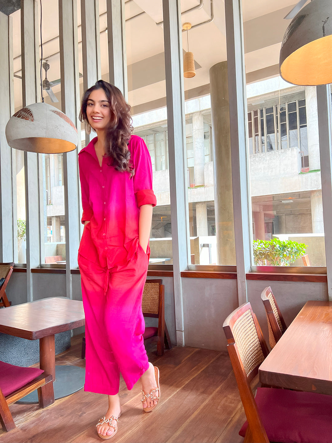 Make a statement this season in this cotton Co-ord Set. The shirt and pants are made from 100% cotton linen making it perfect and super breathable for Indian weather. The shirt can be buttoned down or kept open as per your style and the full length trousers feature a wide waistband for a super comfortable fit...