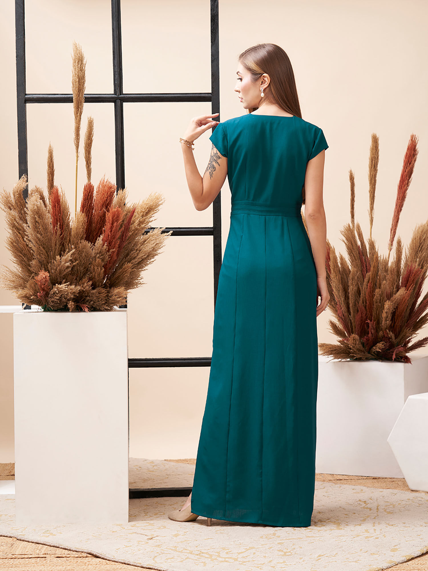 1245-3060 [Color = Teal] [Size = XS, M, L, XL, 2XL] Tailored from polyester, this alluring dress is finish...