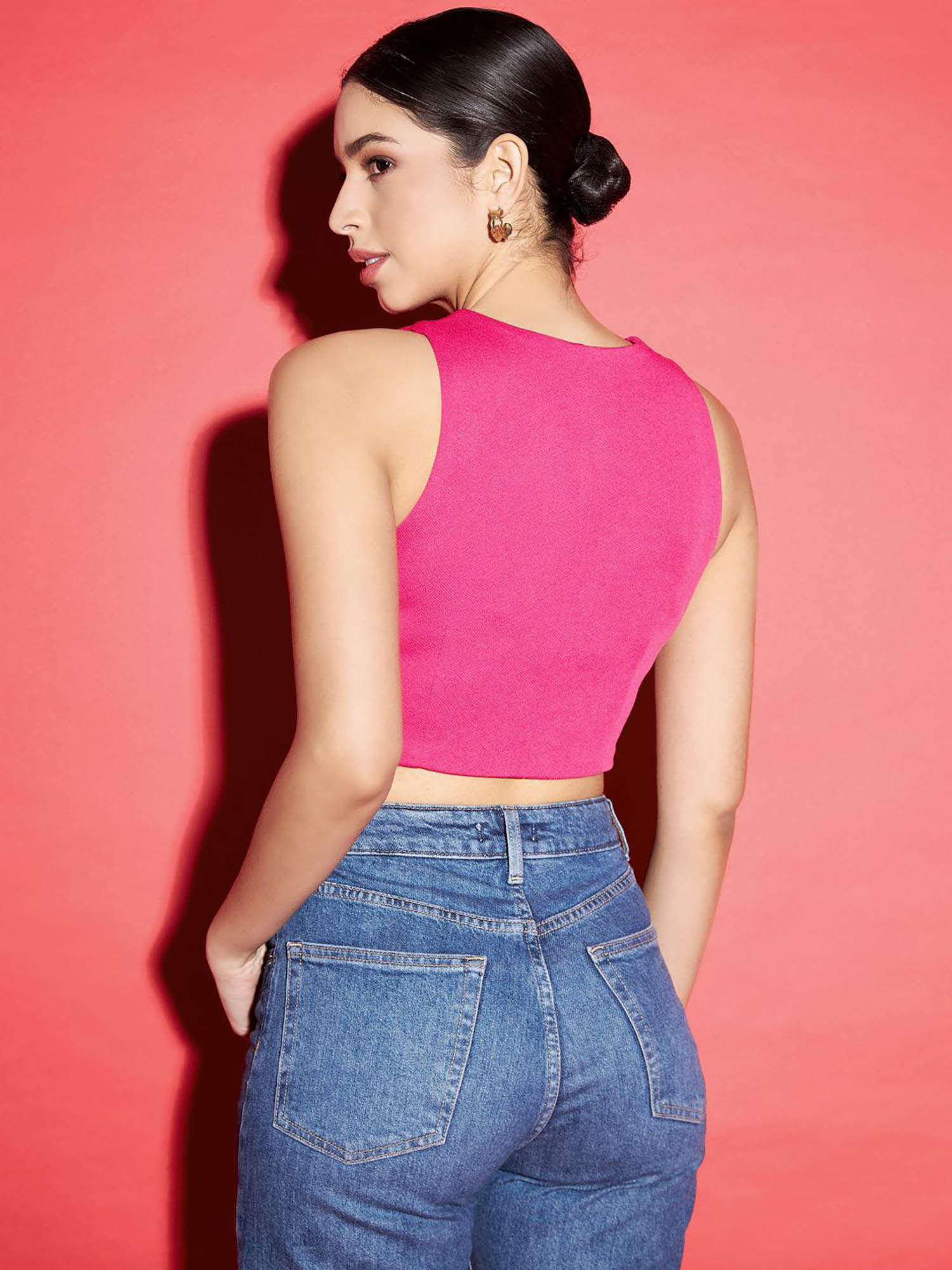 223-560 [Color = Pink ] [Size = S, M, L, XL, 2XL, 3XL] women's V- neck sleeveless crop top featurin...