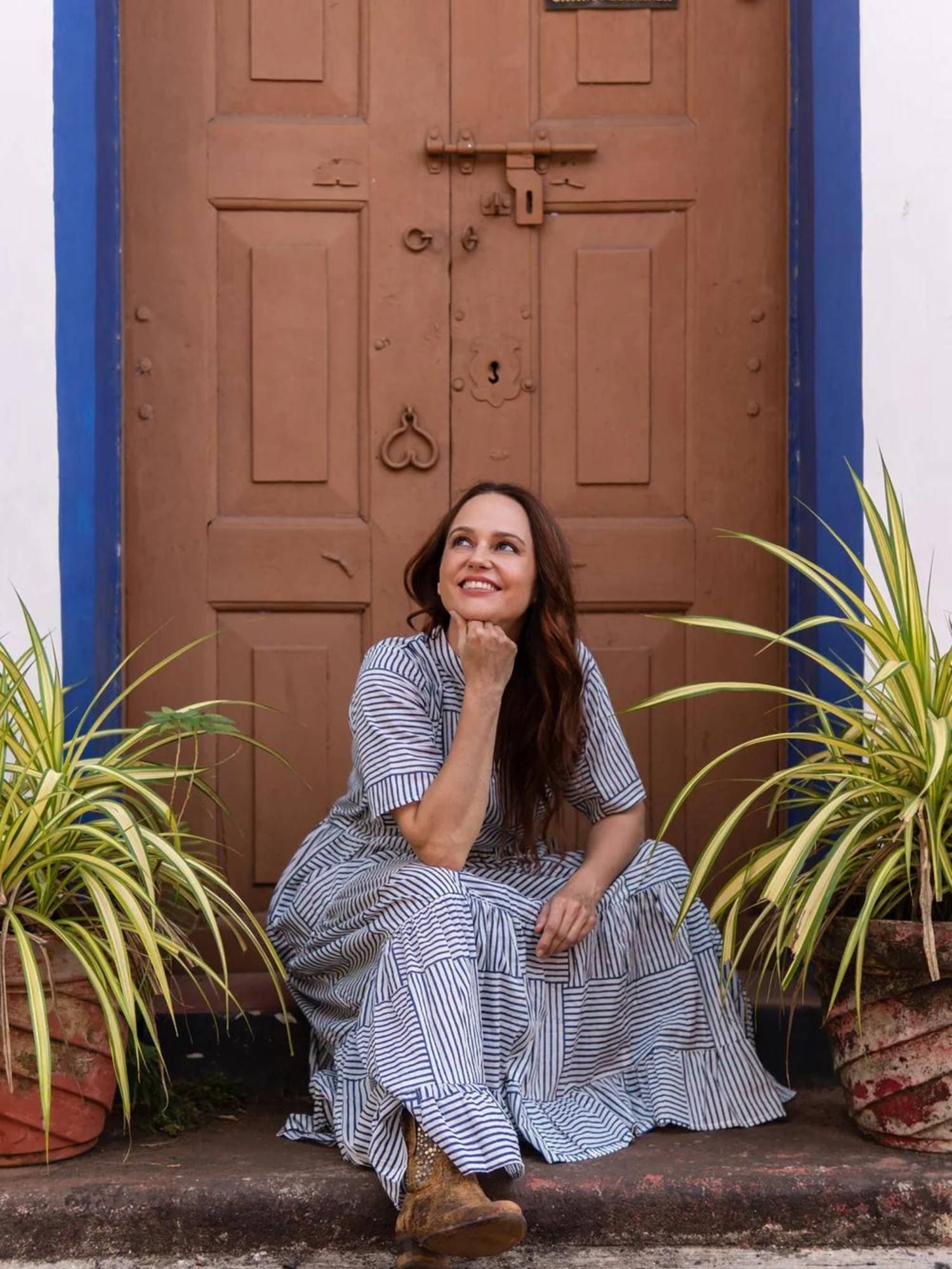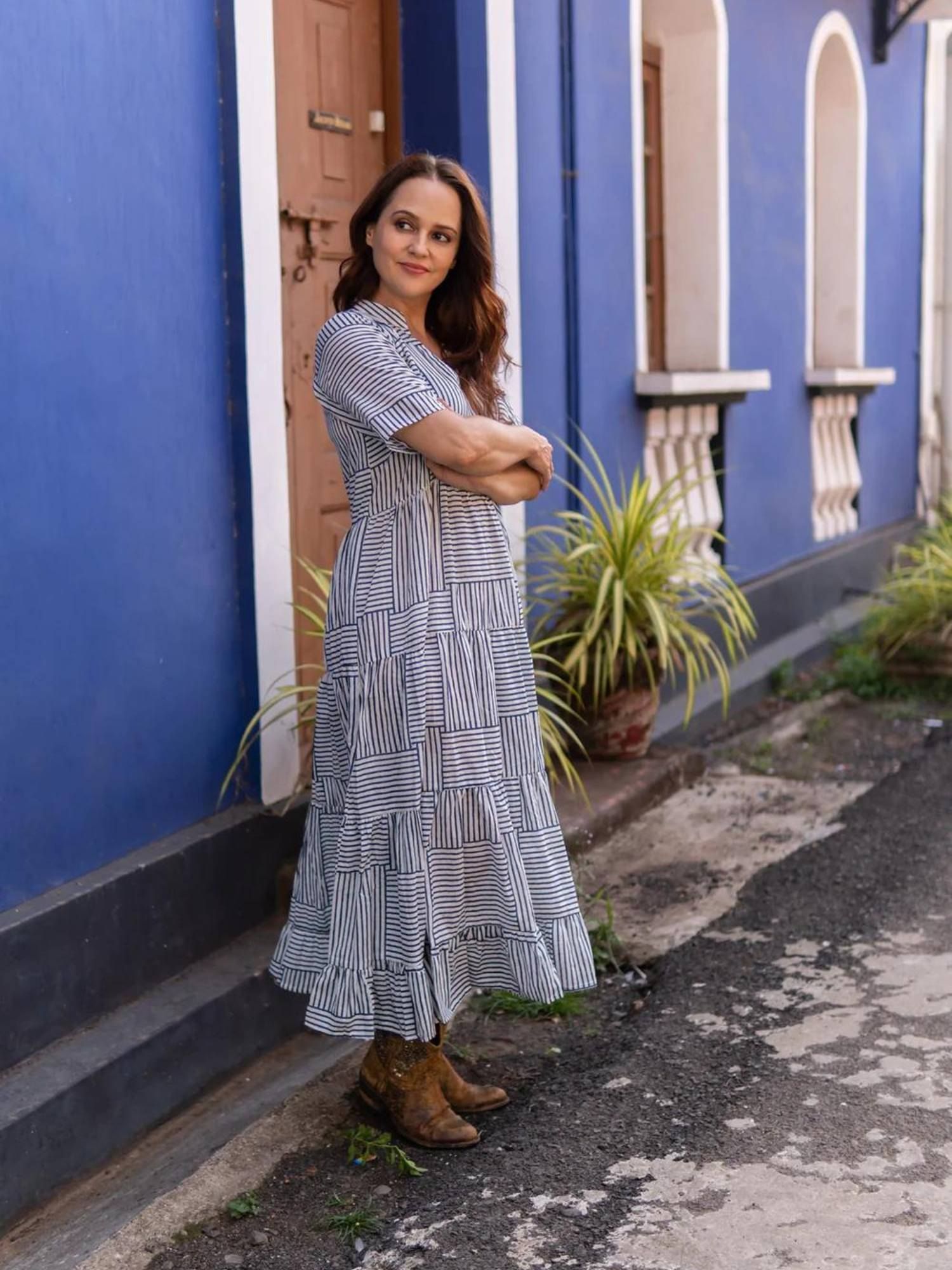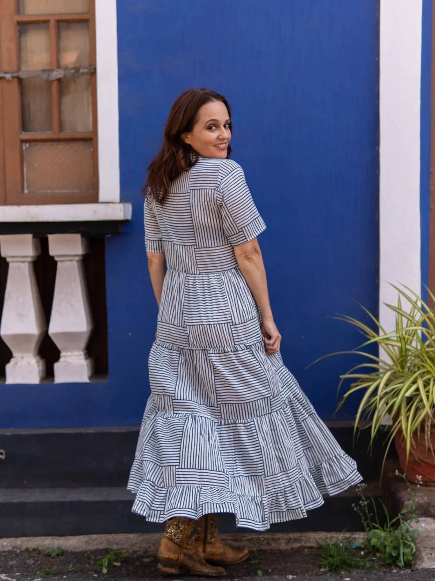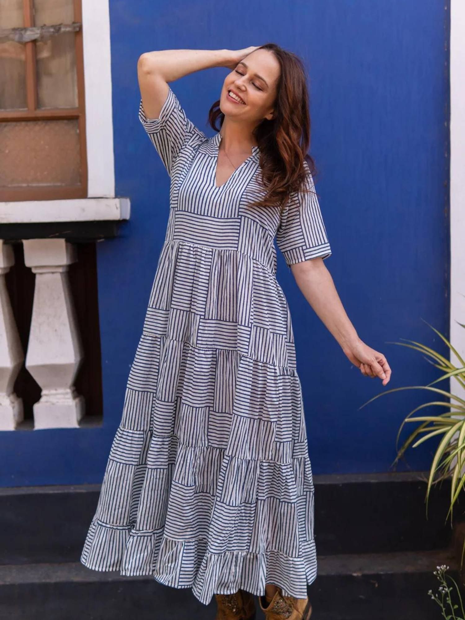 Tailored with care from cotton, it features a mandarin neck, striped pattern, and is accented with a slip-on closure. Partner it with a pair of mules and hoop earrings for a chic look....