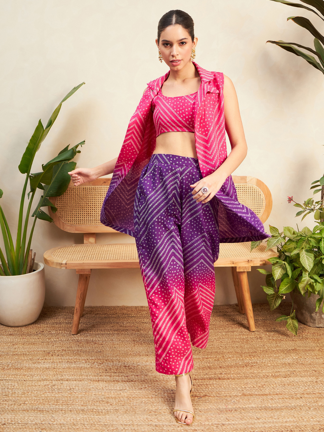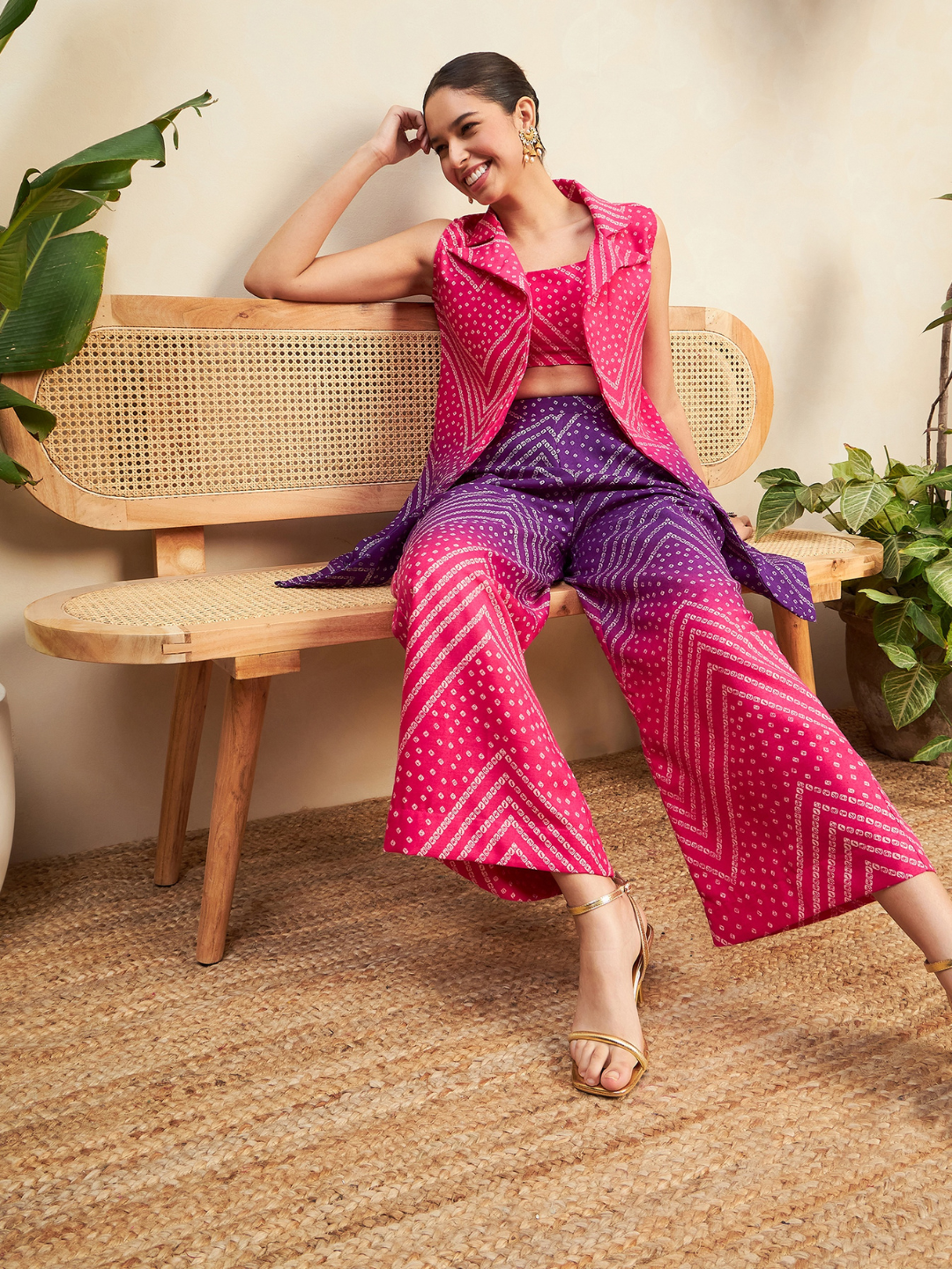 1243-3080 [Color = Pink Bandhani Print ] [Size = XS, S, M, L, XL, 2XL] Make a statement in this Thre...
