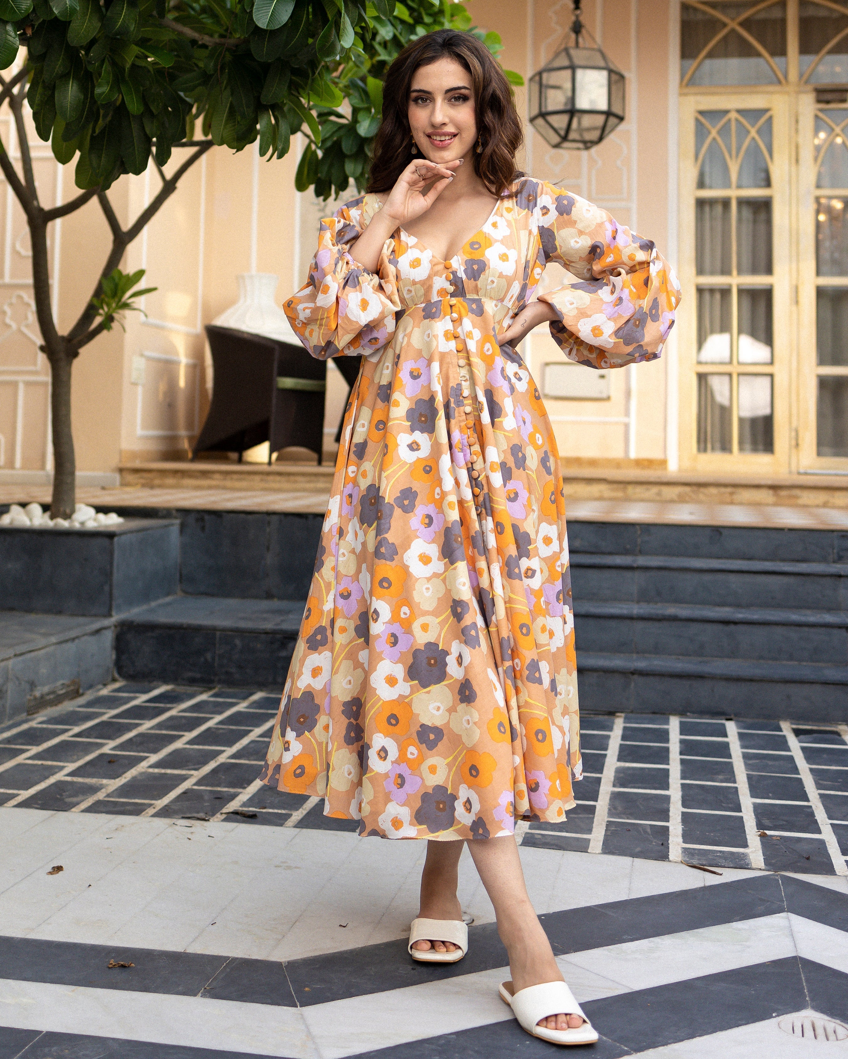 Our stunning Vespera Cotton Button Down Dress comes in a rainbow of colors and is the perfect outfit for a picnic on a breezy summer evening. With a flattering fit and flare shape, this midi dress features a deep neckline and eye-catching sleeves that will make you feel like a total fashionista......