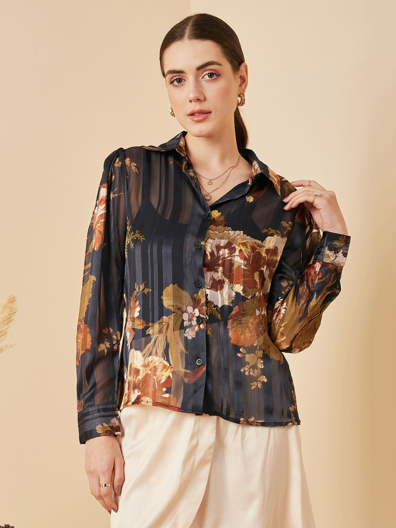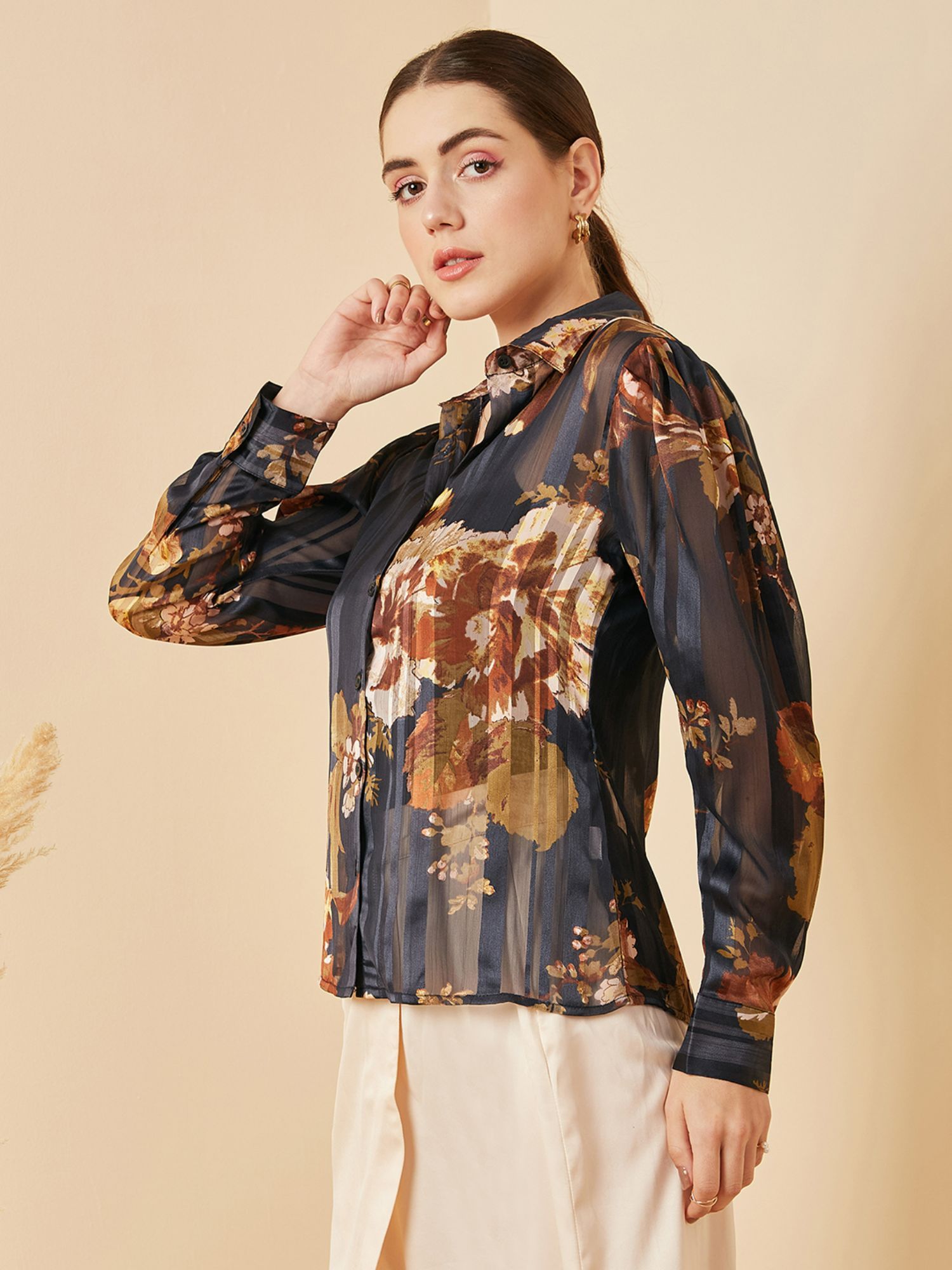 blue floral print opaque casual shirt, has a spread collar, button placket, long Full sleeves, straight hem. Tailored to sartorial perfection from premium quality fabric, it assures a soft and soothing touch against the skin. The exquisite silhouette adds to its appeal....