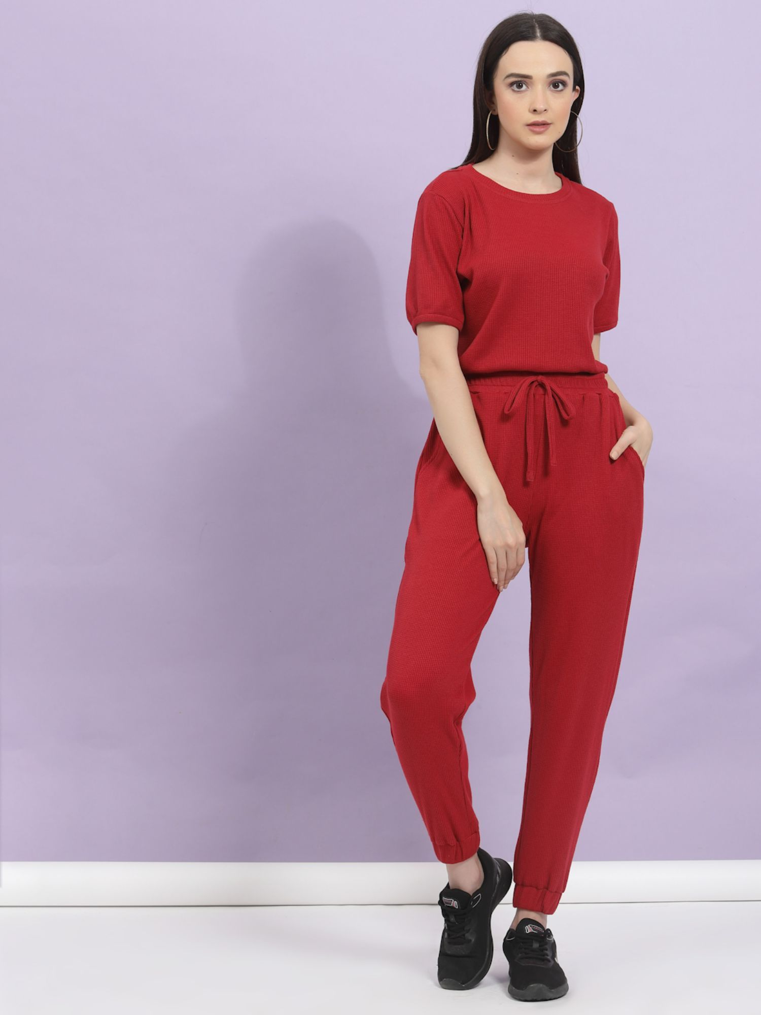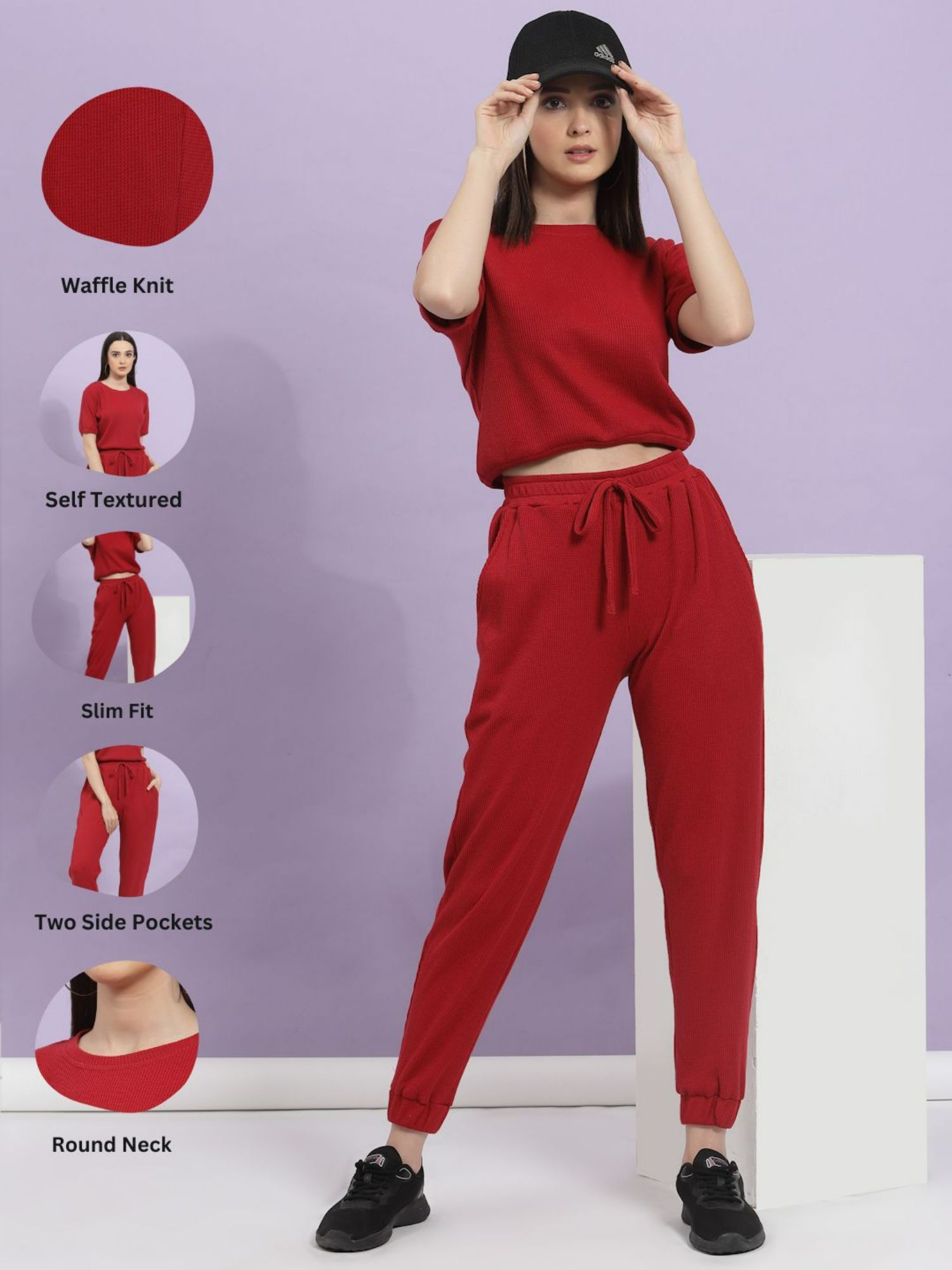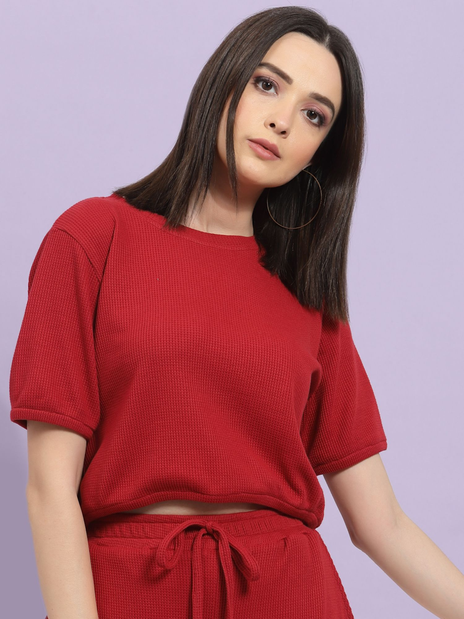 Give your wardrobe a fashionable spin with this Maroon co-ord set. Crafted from high-quality cotton, this co-ord set is designed with half sleeves and a round neck. Team it up with a pair of heels and dainty earrings to garner all the attention....