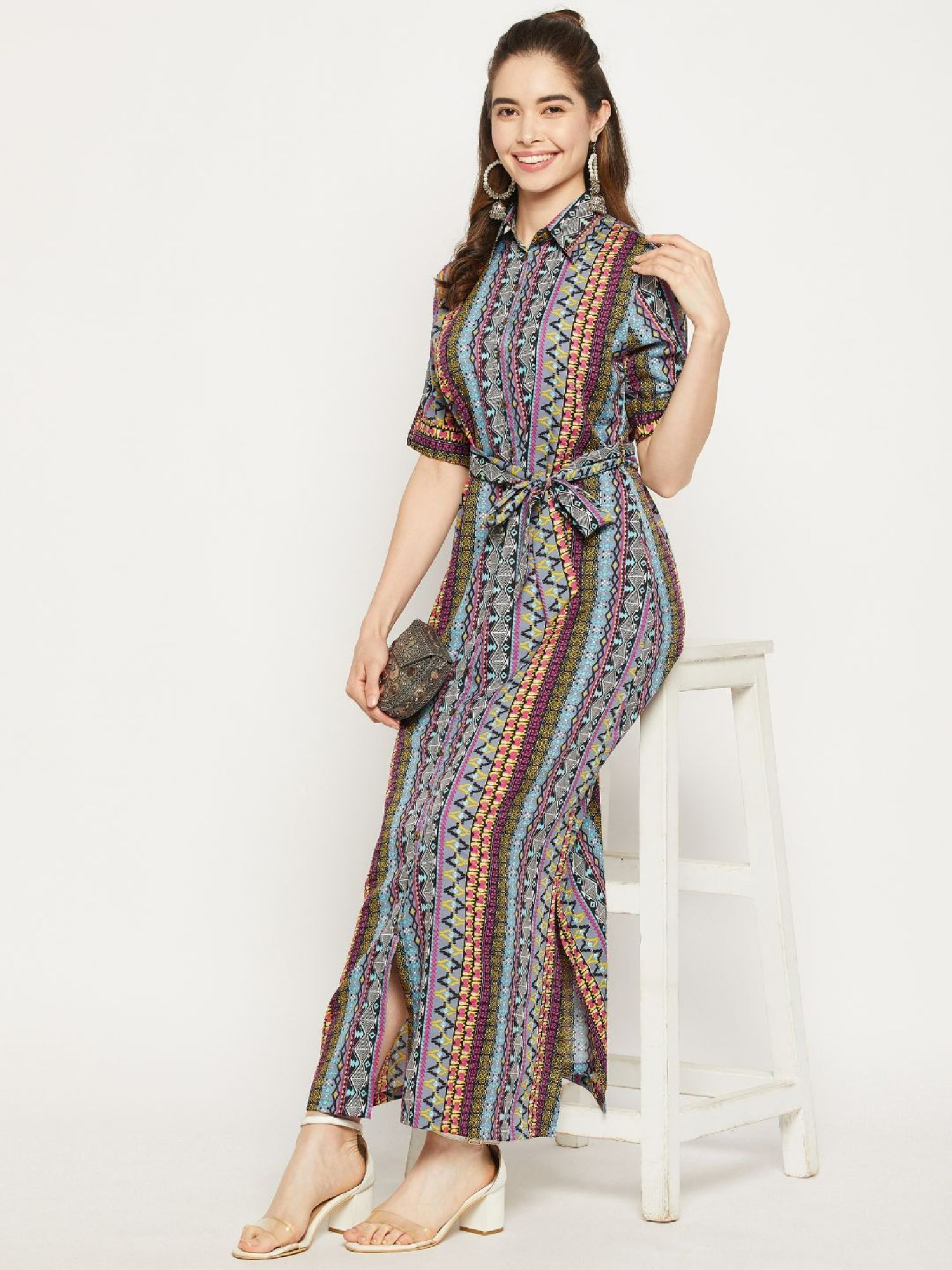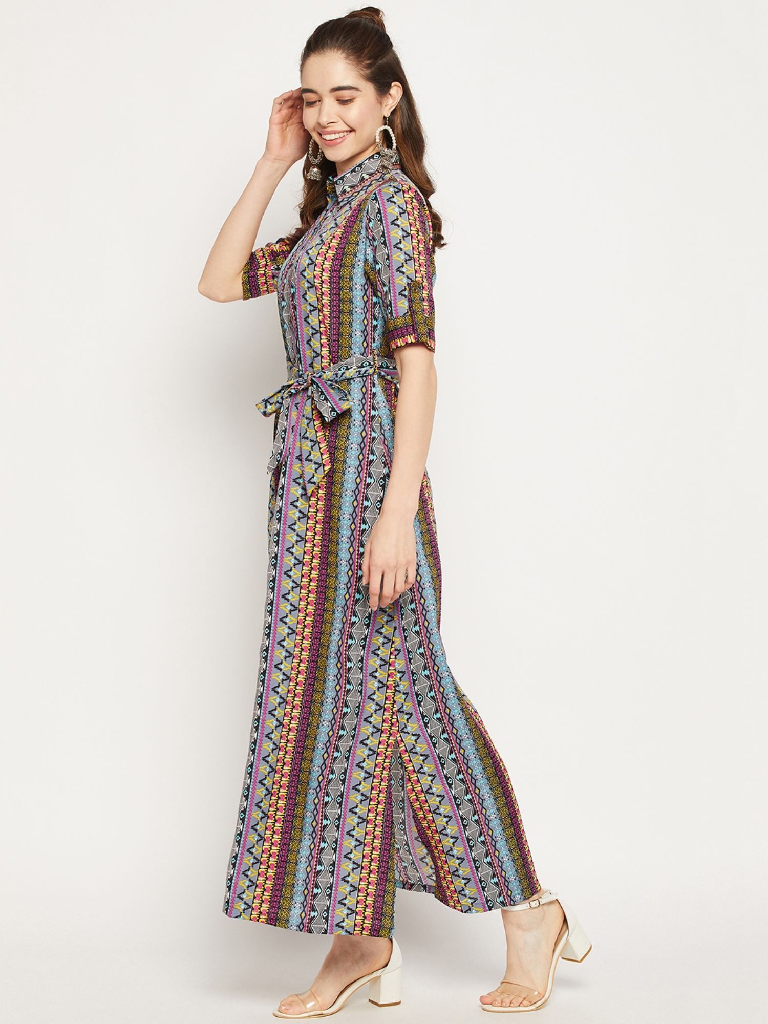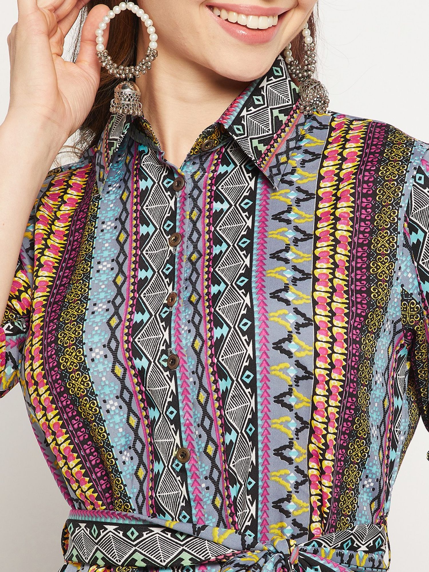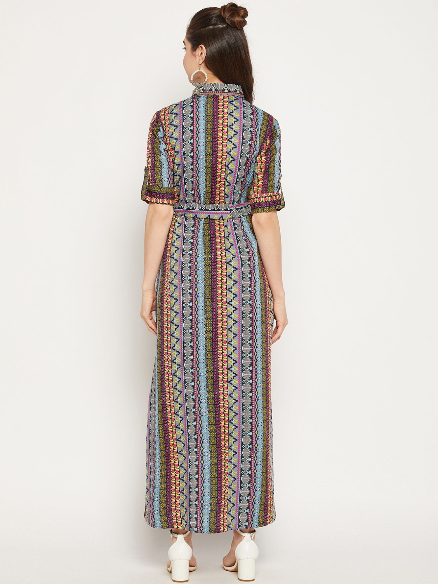 Made with the finest material, it features a collar neck and half sleeves. Style it with earrings, kitten heels, and a small shoulder bag to complete the ensemble....