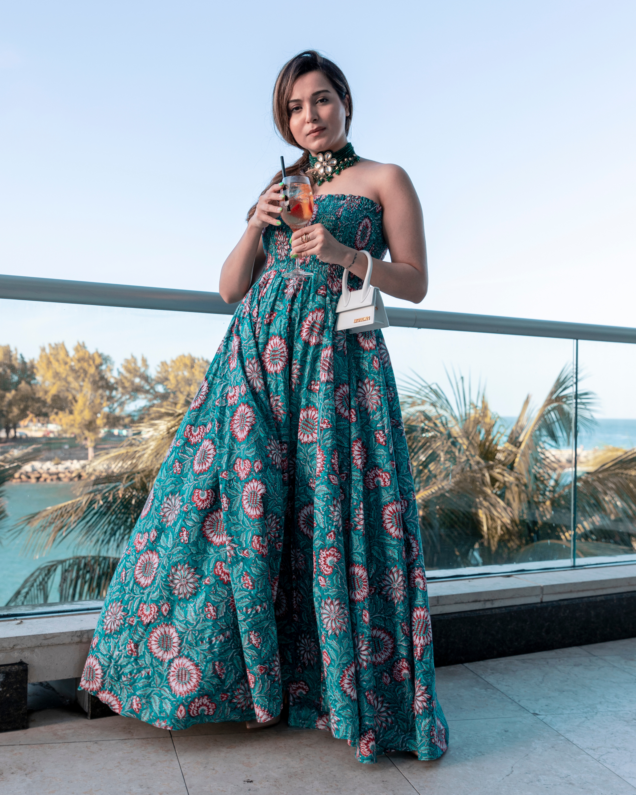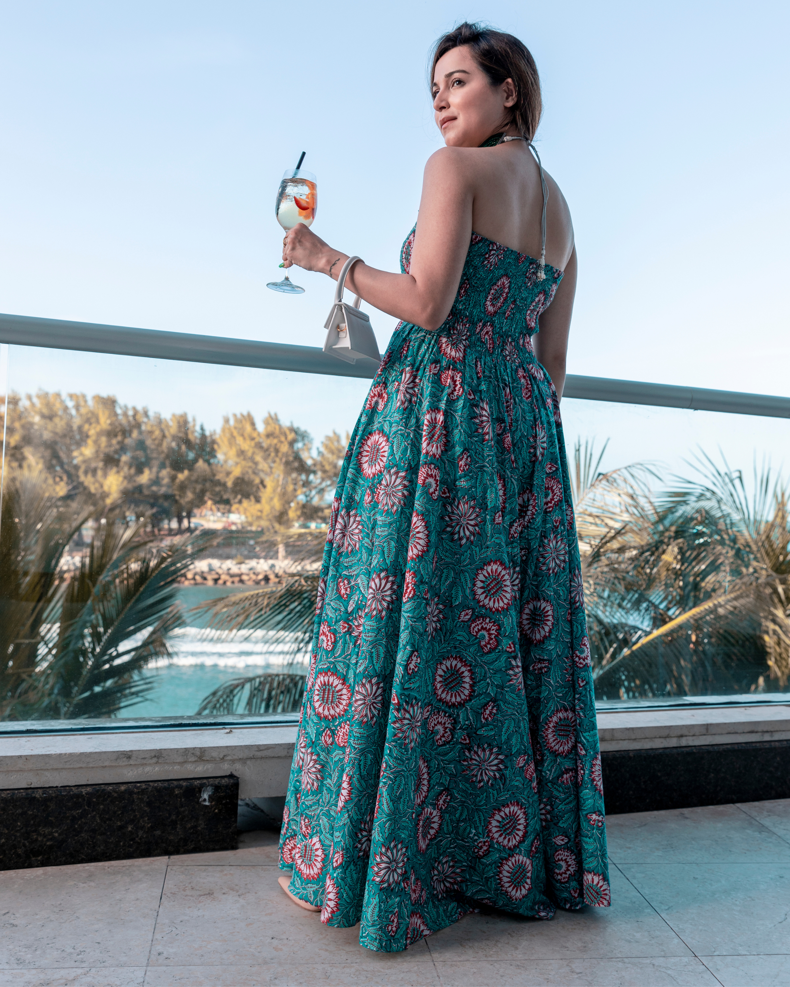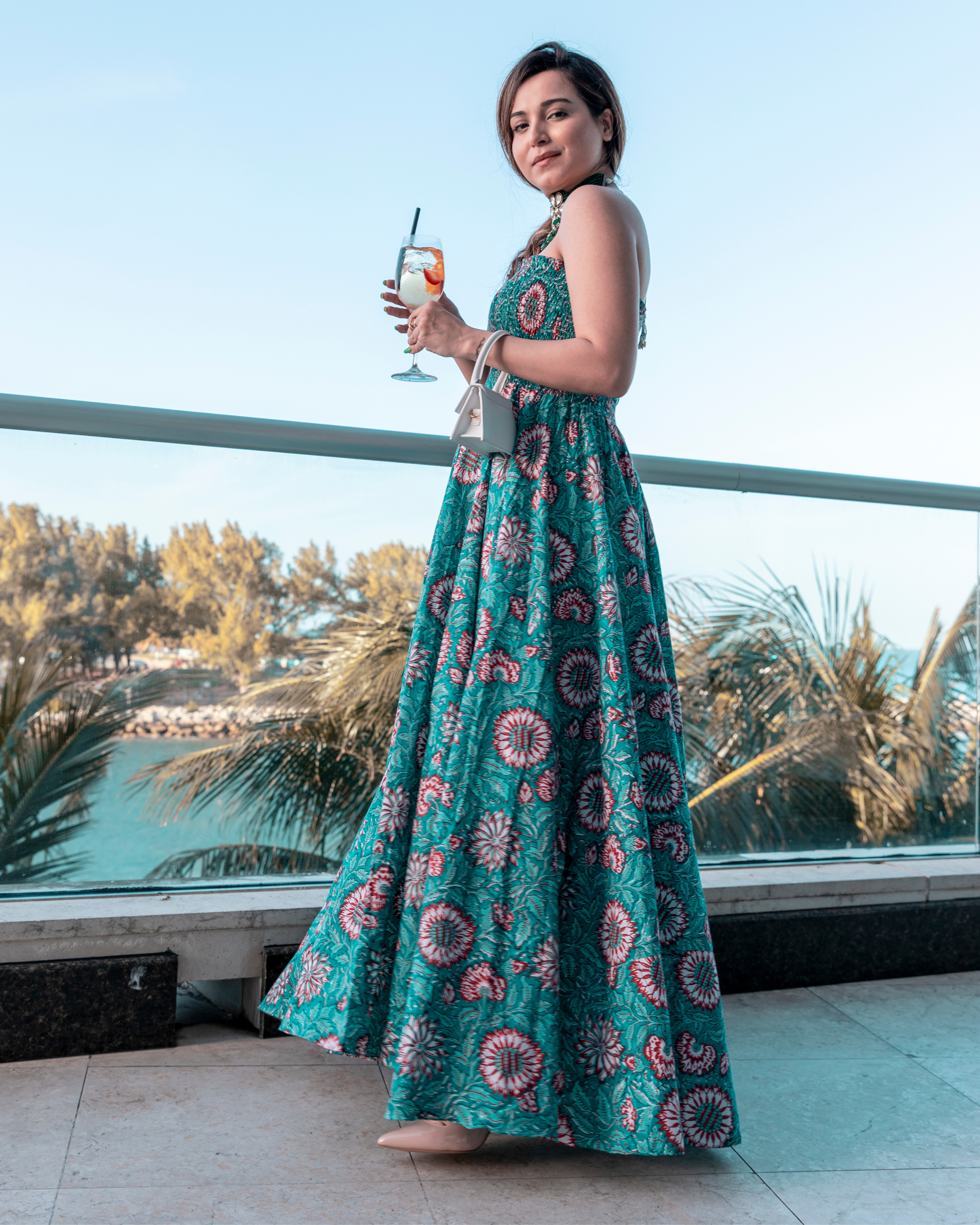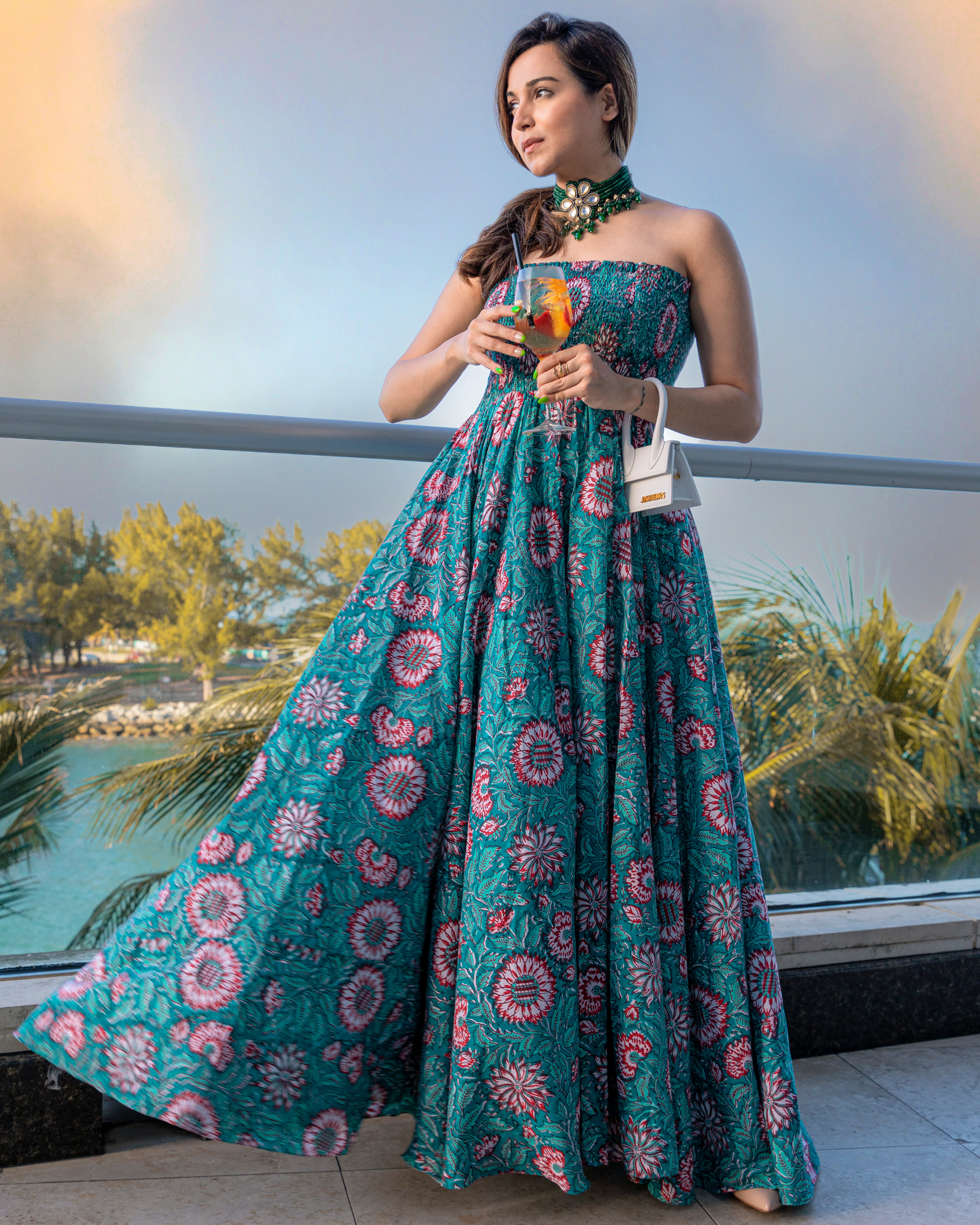 Green Cotton Handblock dress. Color: Green Dress Fabric: Cotton Neckline: Off Shoulder Sleeve: Sleeveless CARE: Gentle Handwash Only Model Size: The model is wearing S Size Model Height: 5'7"...