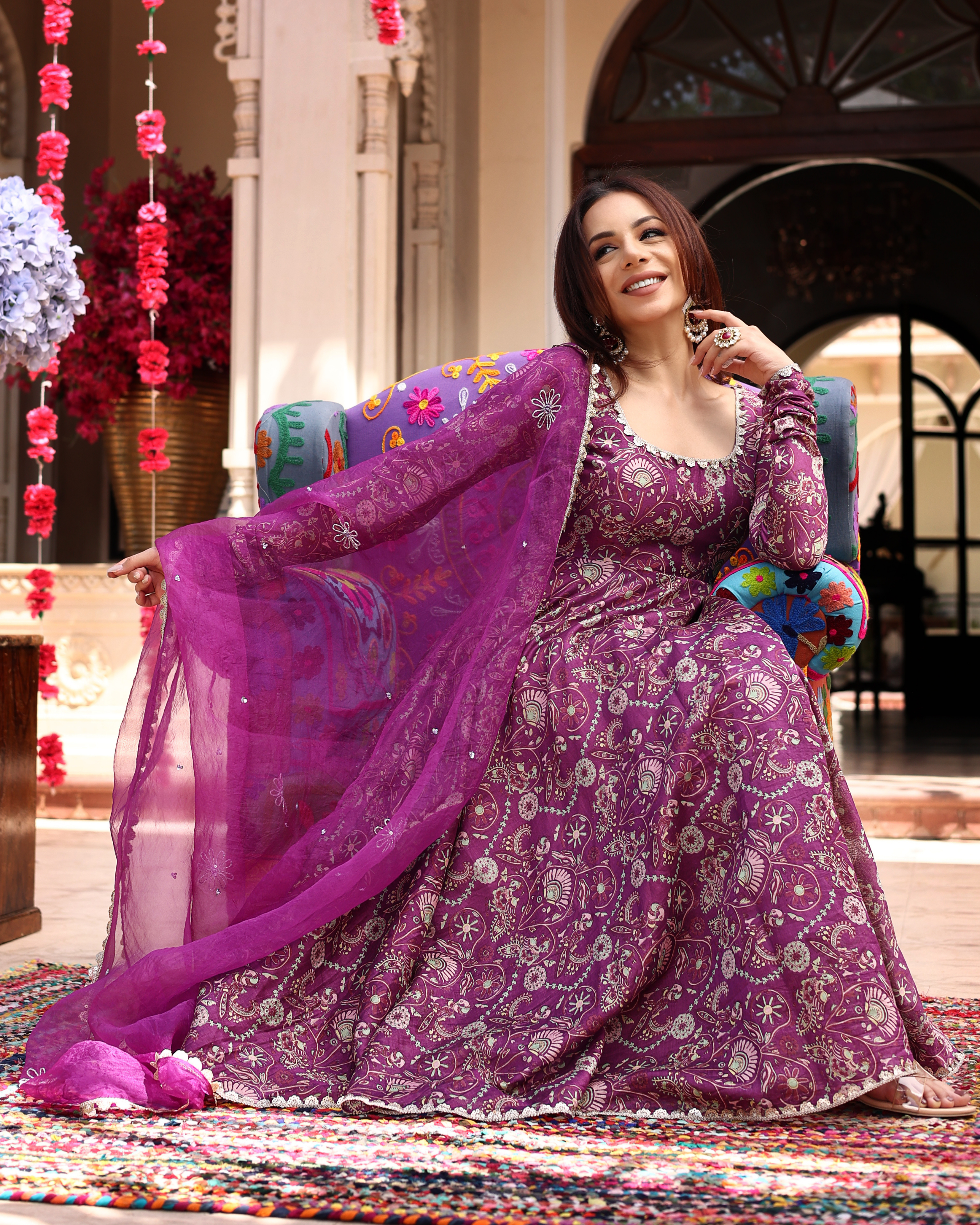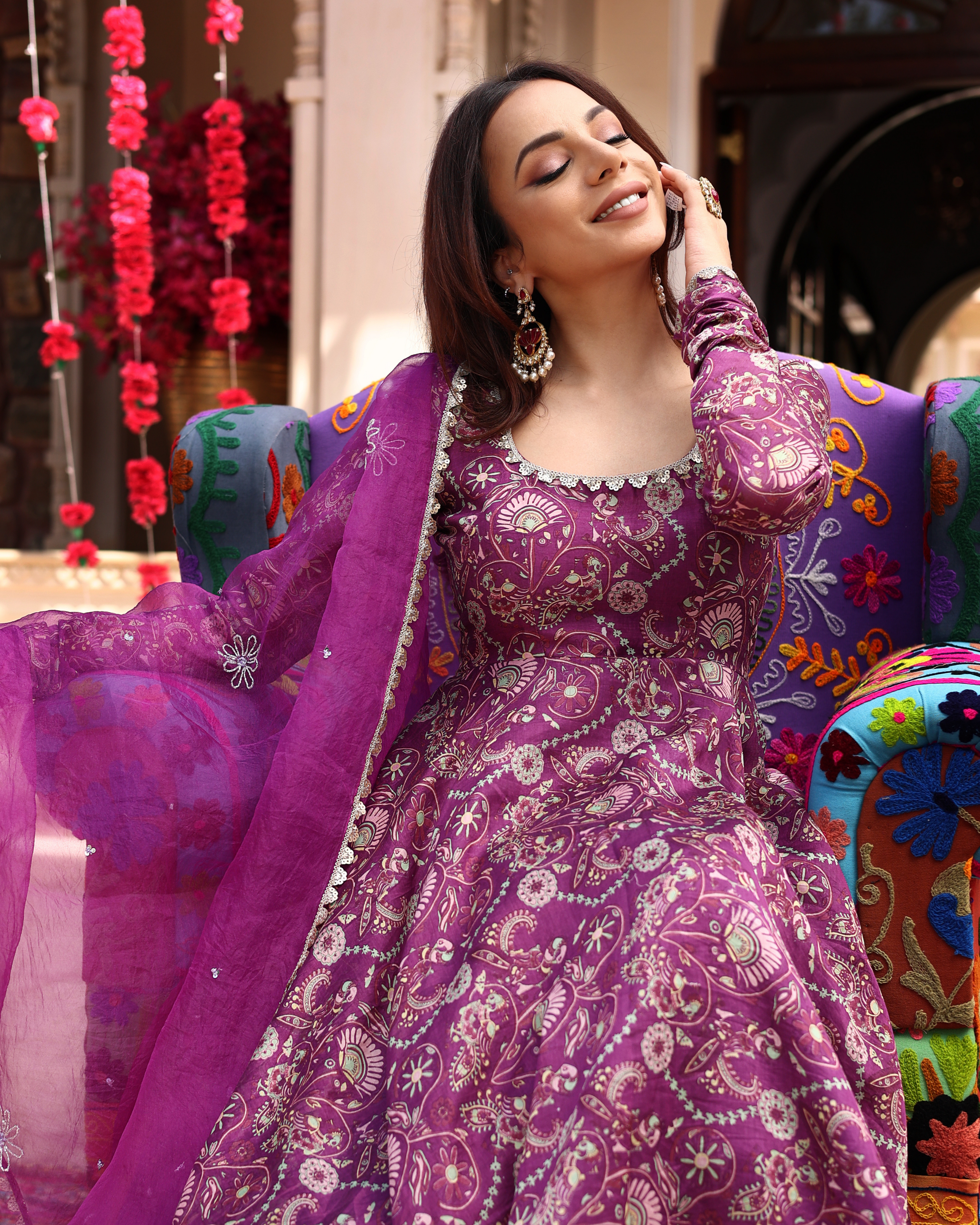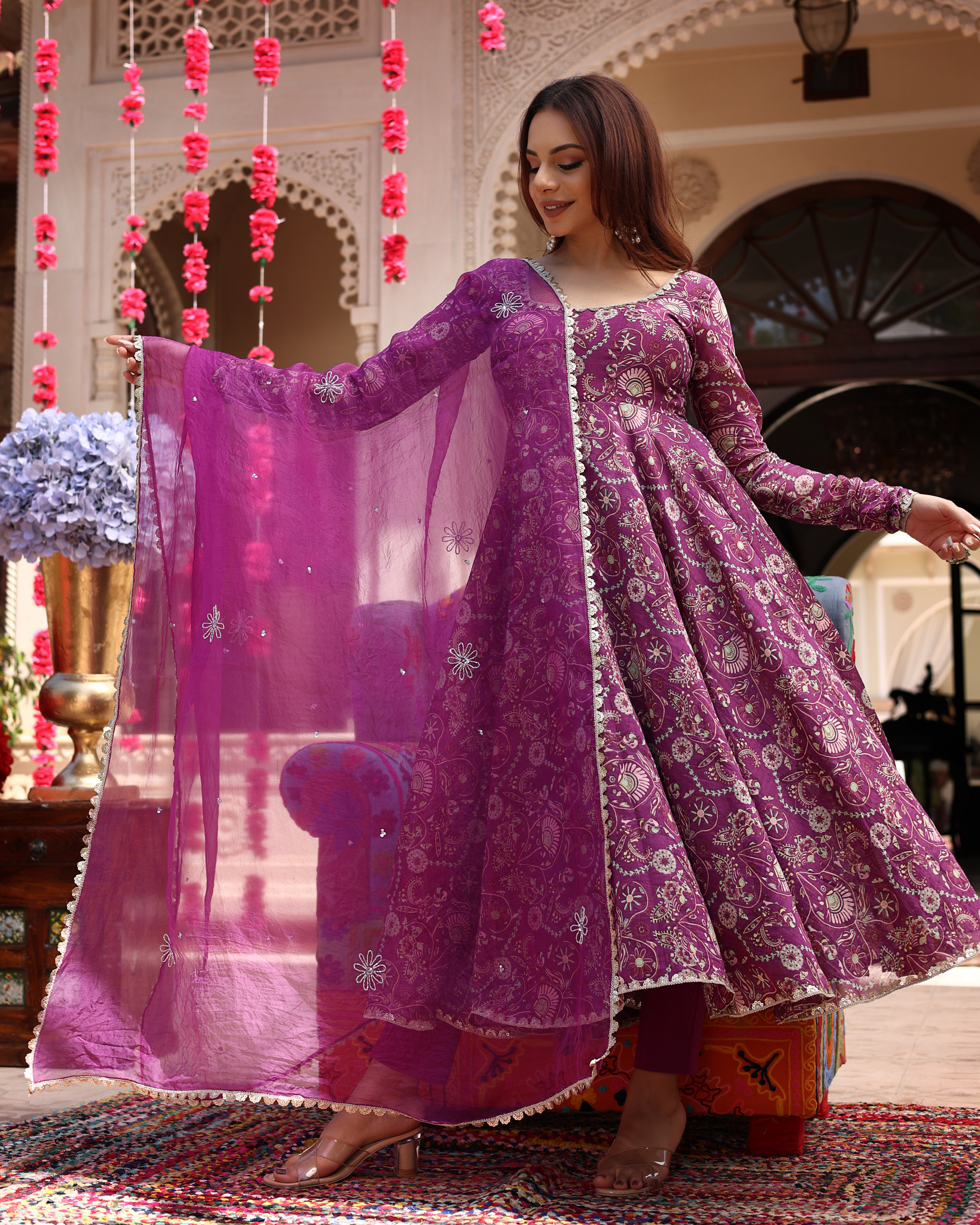 Floral Lavender Hues Printed Chanderi Suit Set.....