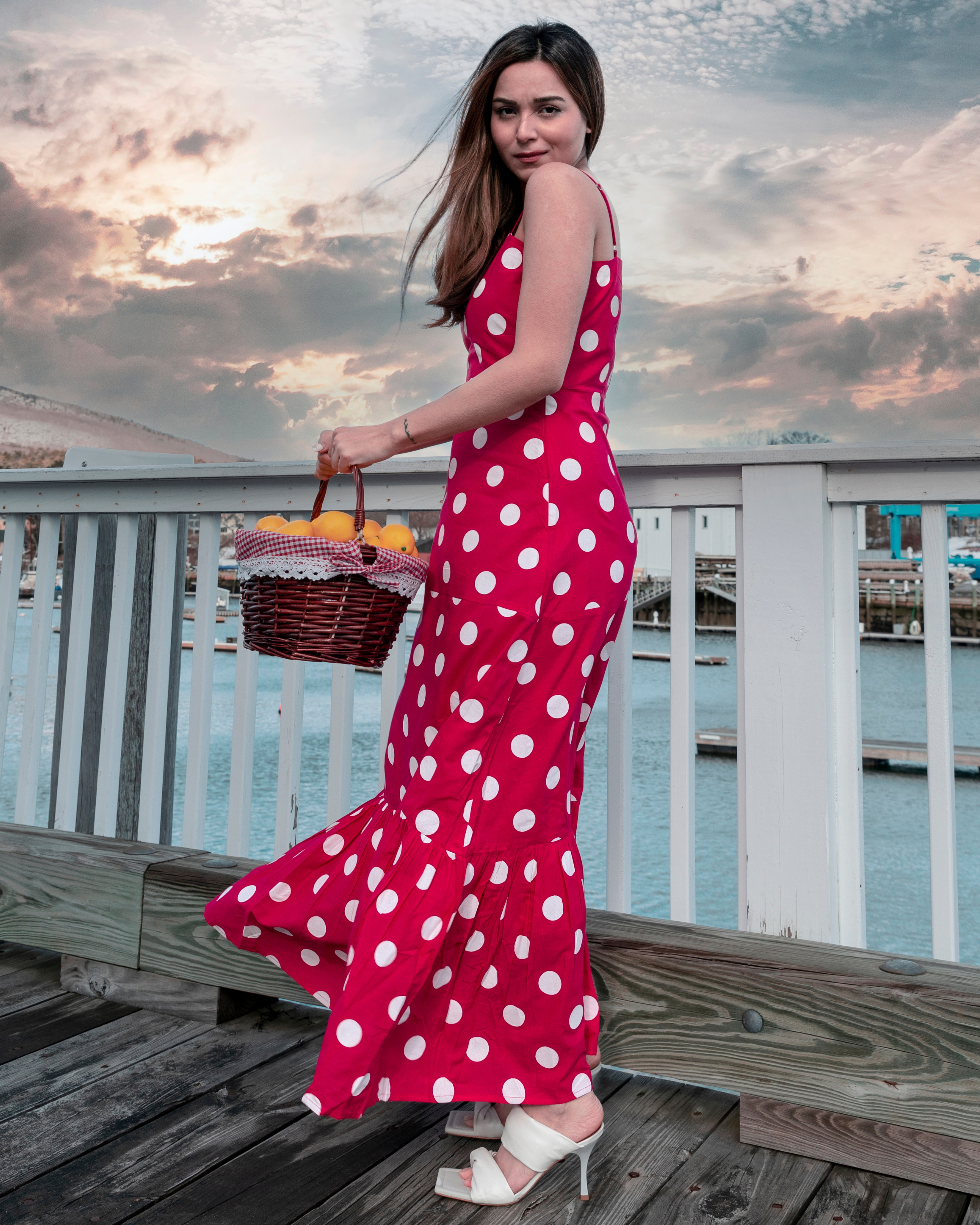 HOT PINK Cotton polka Handblock dress. Color: Pink Dress Fabric: Cotton Neckline: Square Neckline CARE: Gentle Handwash Only Model Size: The model is wearing S Size Model Height: 5'7"...